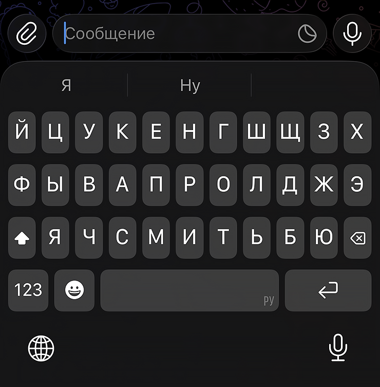 Прозрачные элементы с мягким эффектом преломления света при прокрутке появились в нижней панели навигации, на клавиатуре, в панели стикеров и других блоках.
