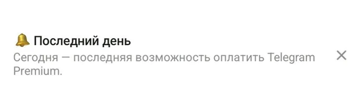 «Сегодня — последняя возможность оплатить Telegram Premium», — говорится в системном сообщении для пользователей. Такое в том числе получили редакторы Т—Ж.