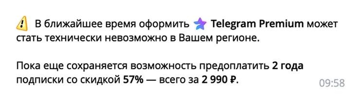 31 марта «Телеграм» начал предупреждать пользователей из России о том, что оплата подписки Premium «может стать технически невозможна» в стране.