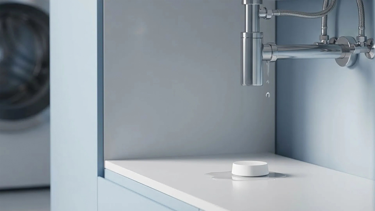 У датчика протечки новый корпус. В остальном изменений нет. Прибор можно установить под раковиной, стиральной машиной и батареей. Устройство будет реагировать на попадание воды и отправлять уведомления на смартфон.