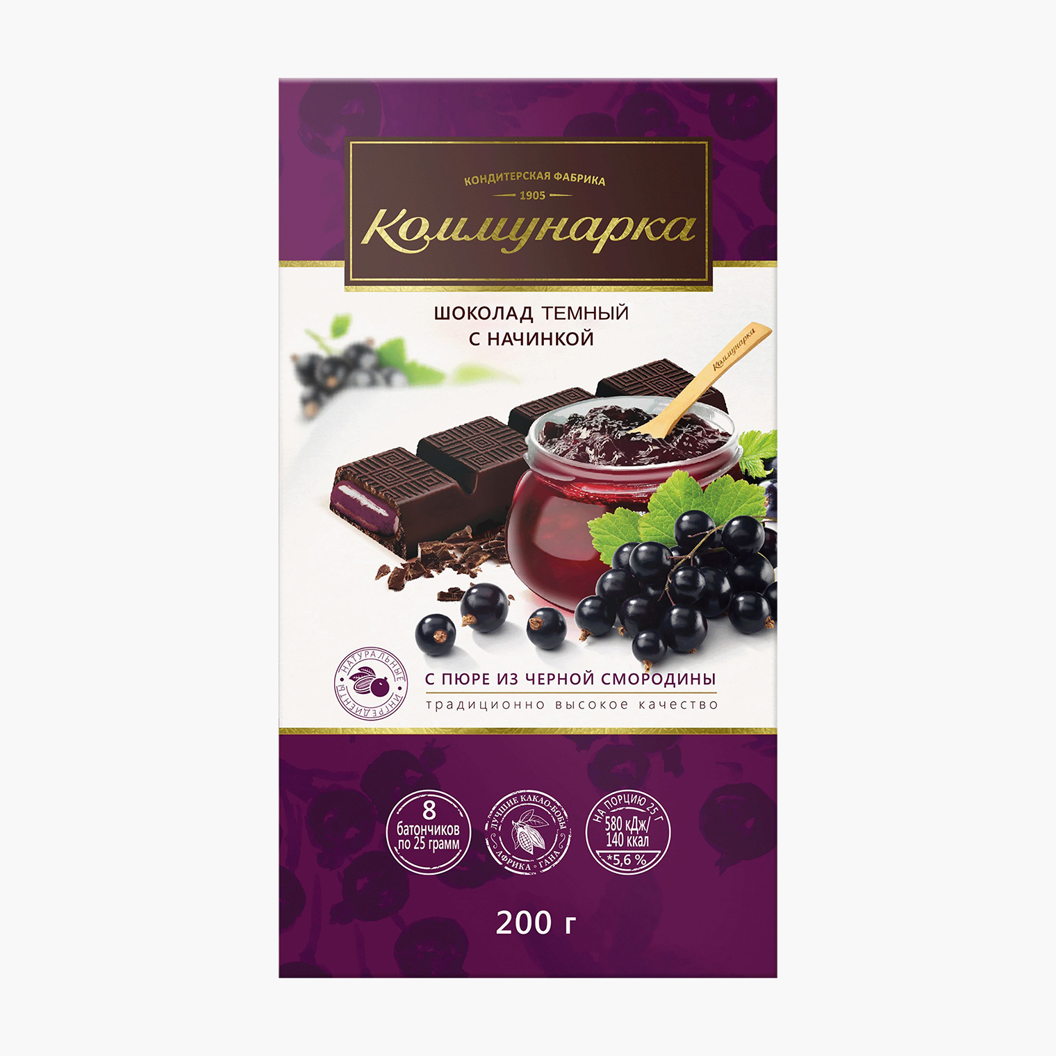 Иногда покупаю плитку с пюре из черной смородины от «Коммунарки». Необычно, не на каждый день. Сам шоколад в паре с начинкой очень вкусный! С другими наполнителями не нравится. Причем не могу себя назвать фанатом черной смородины :)