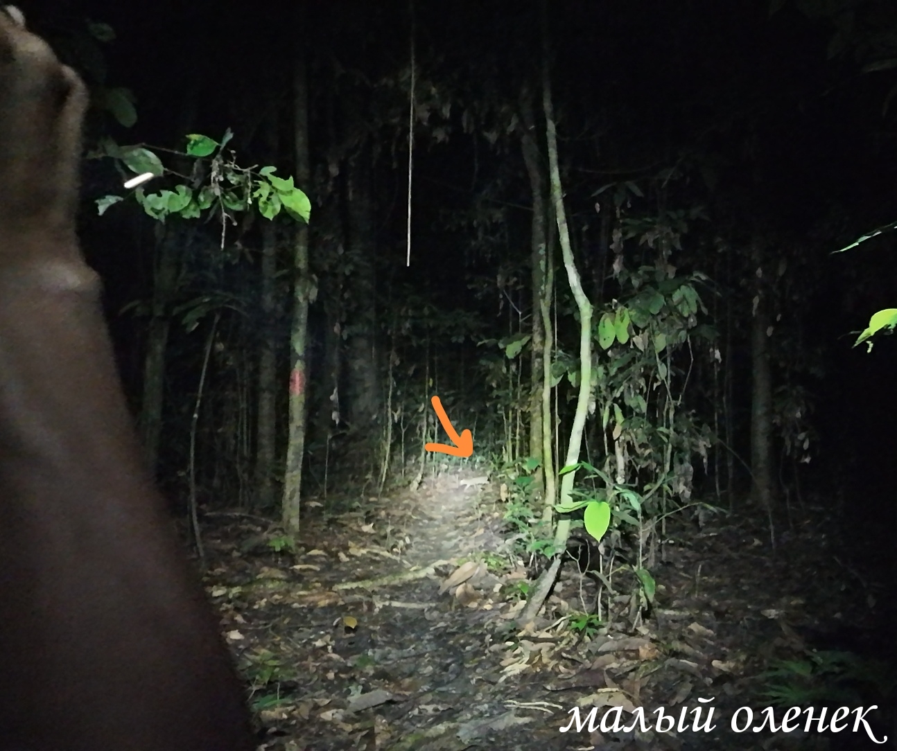 Не останавливаясь, мы двинулись дальше, всё глубже в джунгли. И там, нам посчастливилось увидеть дикую кошку и самого маленького оленя в мире — малого оленька. Он пробежал среди деревьев, но все равно круто! Так и завершился день среди джунглей острова Борнео. Нас ждала ночь..