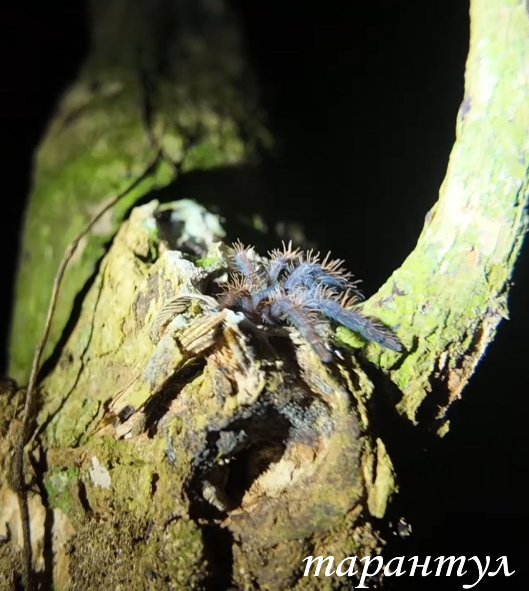 И самое главное — это обитатели леса. Мы встретили огромного тарантула и местных скорпионов — по словам гида, их укус мог быть смертельно опасным. Встретились нам и улитки, и крошечная разноцветная птичка, спящая на ветке.