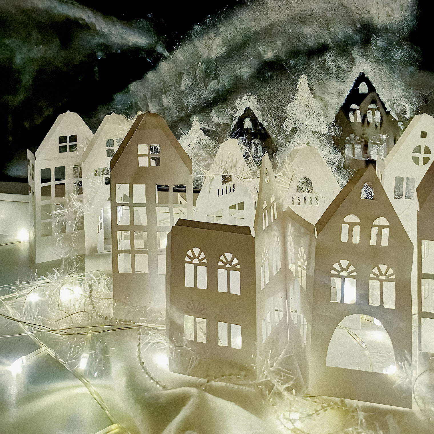 Под настроение делаю простой, но милый декор: бумажные домики на окне, рождественский вертеп карманного размера, гирлянду из искусственных еловых веток в дверной проем. Даже в подъезде многоквартирного дома тайно вешали с младшим сыном объявление с отрывными листочками-пожеланиями с конфеткой. А потом фото попало в городские новости.