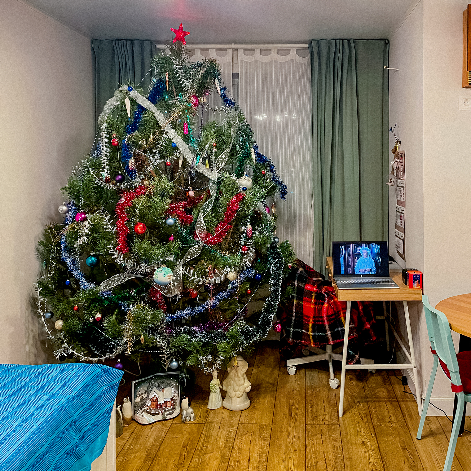 Студия и огромная елка — и у тебя ноль шансов избежать праздничного настроения каждый день. И не важно, что там фоном происходит.