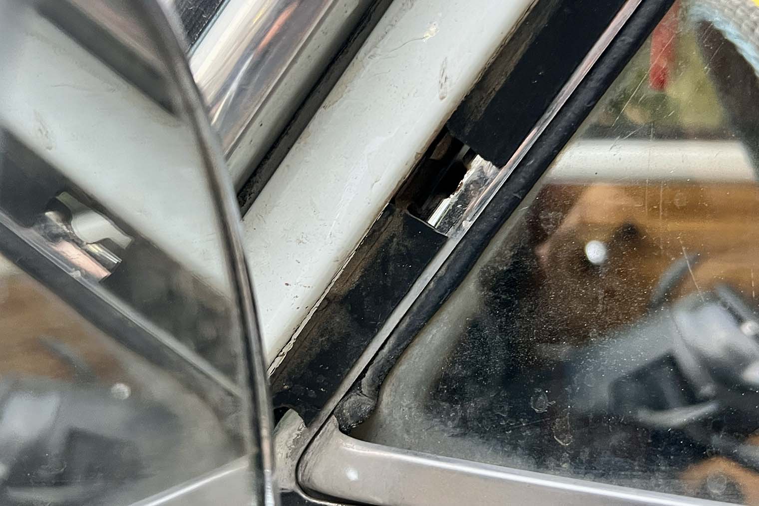 Также демонтировал боковые зеркала: прошлый владелец поставил дешевые пластиковые с регулировками. Для этого он варварски просверлил крепления форточек и проклеил рамки дверей двусторонним скотчем.