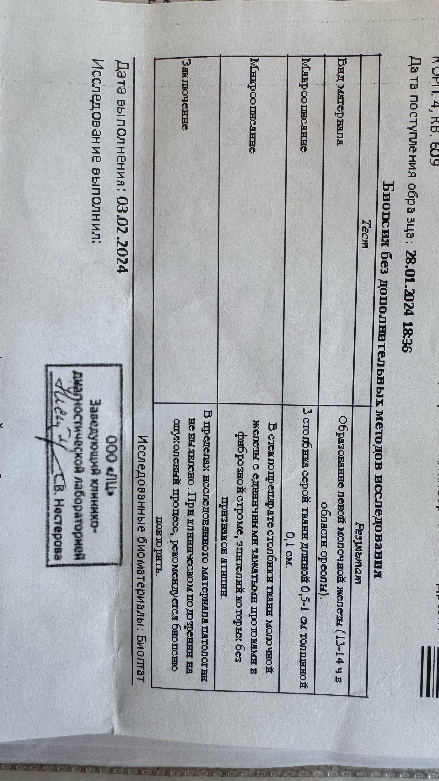 Январь 2024. В 2024 году (мне было 32) вновь пошла на узи молочных желез и на узи обнаружилось образование в левой мж "гипоэхогенное неправильной овальной формы 9,6*4,5*9,6 с четкими неровными контурами, аваскулярное". В заключении — фиброаденома? атипичная киста? под вопросом. BIRADS не написали (тогда я еще не знала о том, что узист должен присваивать уровень по этой классификации).