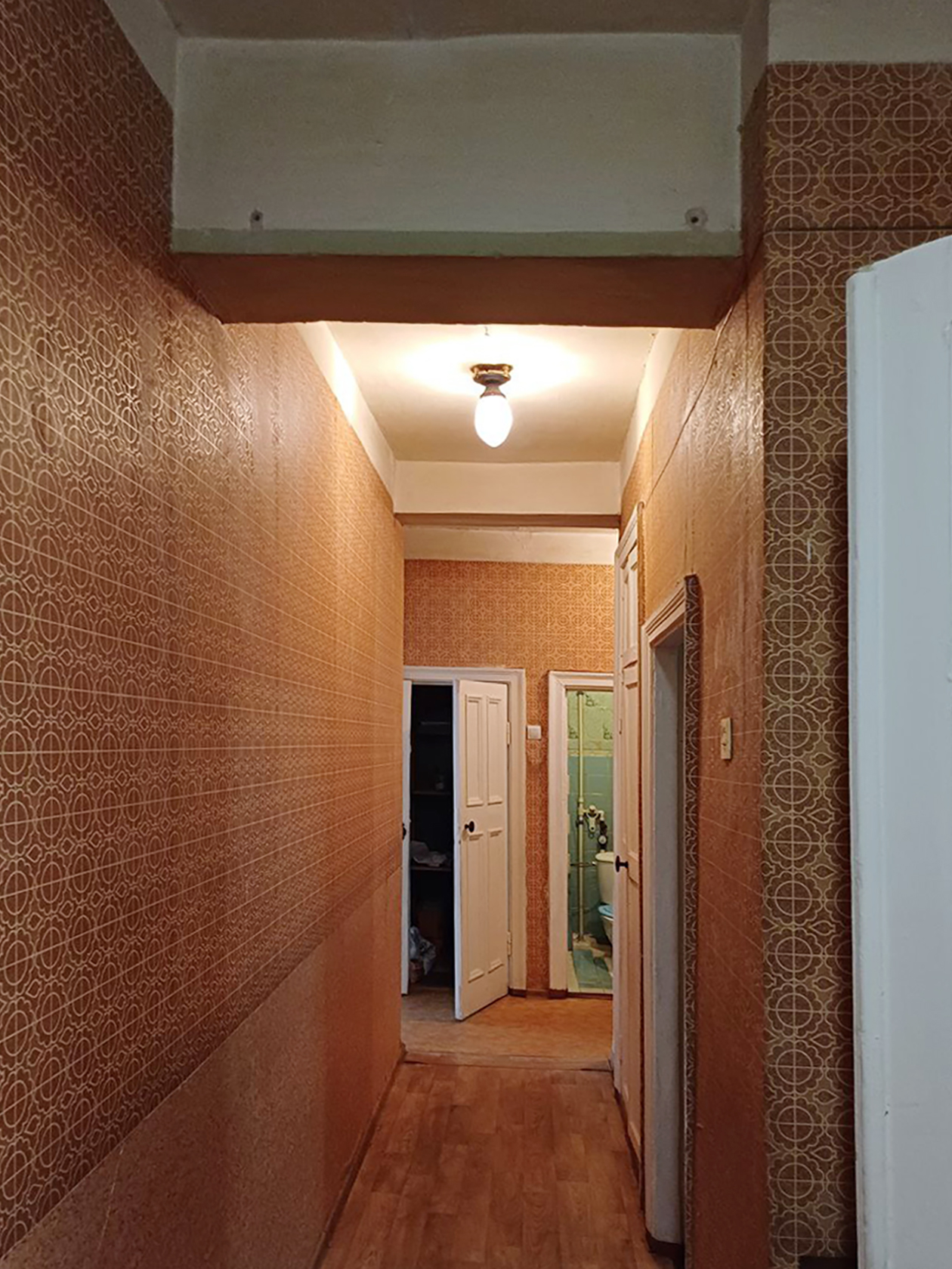 Ее площадь — 75 м². Она была темная, несмотря на высокие потолки и большие окна. Дело в том, что большинство помещений выходит на северную сторону и старые деревья во дворе заслоняют свет.