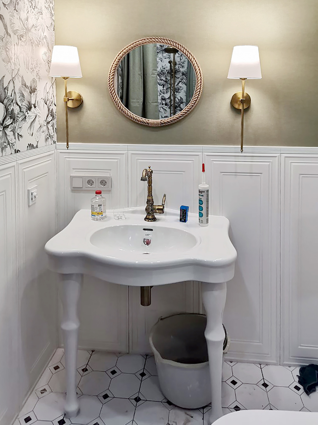 Закупками занимались клиенты, но подбор был на мне. Основные стройматериалы мы приобретали в «Лемана Про». Напольное покрытие покупали вместе с услугой по укладке у частного подрядчика. Заказчица подбирала по проекту освещение, розетки, сантехнику — заказывала все это на AliExpress и Ozon.