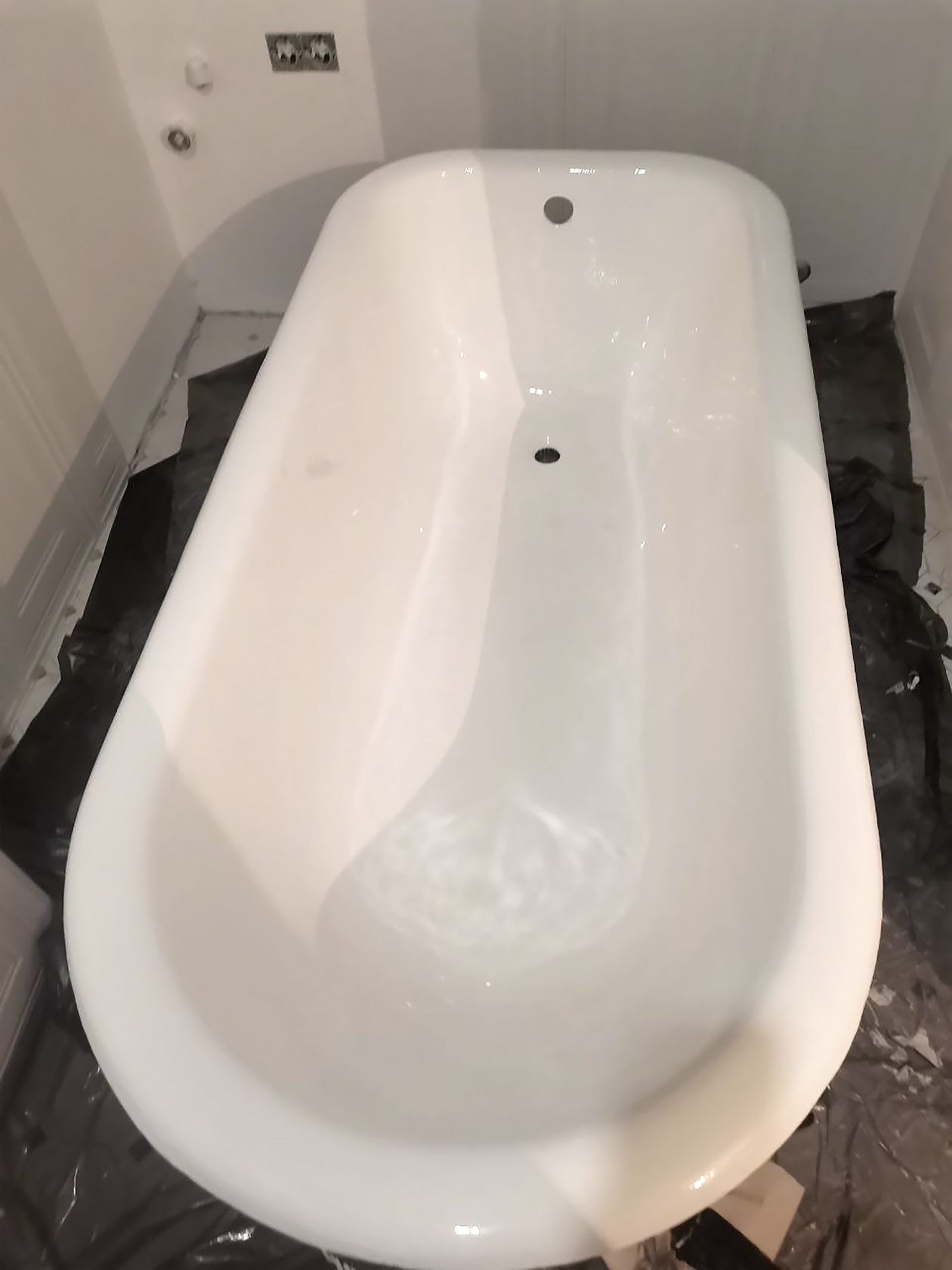 Ванна. Заказчица хотела выбросить старую чугунную ванну, но мы настояли на реставрации. Чугун такого высокого класса уже не производят. Если есть возможность восстановить вещи, лучше их сохранить, чем выбросить.