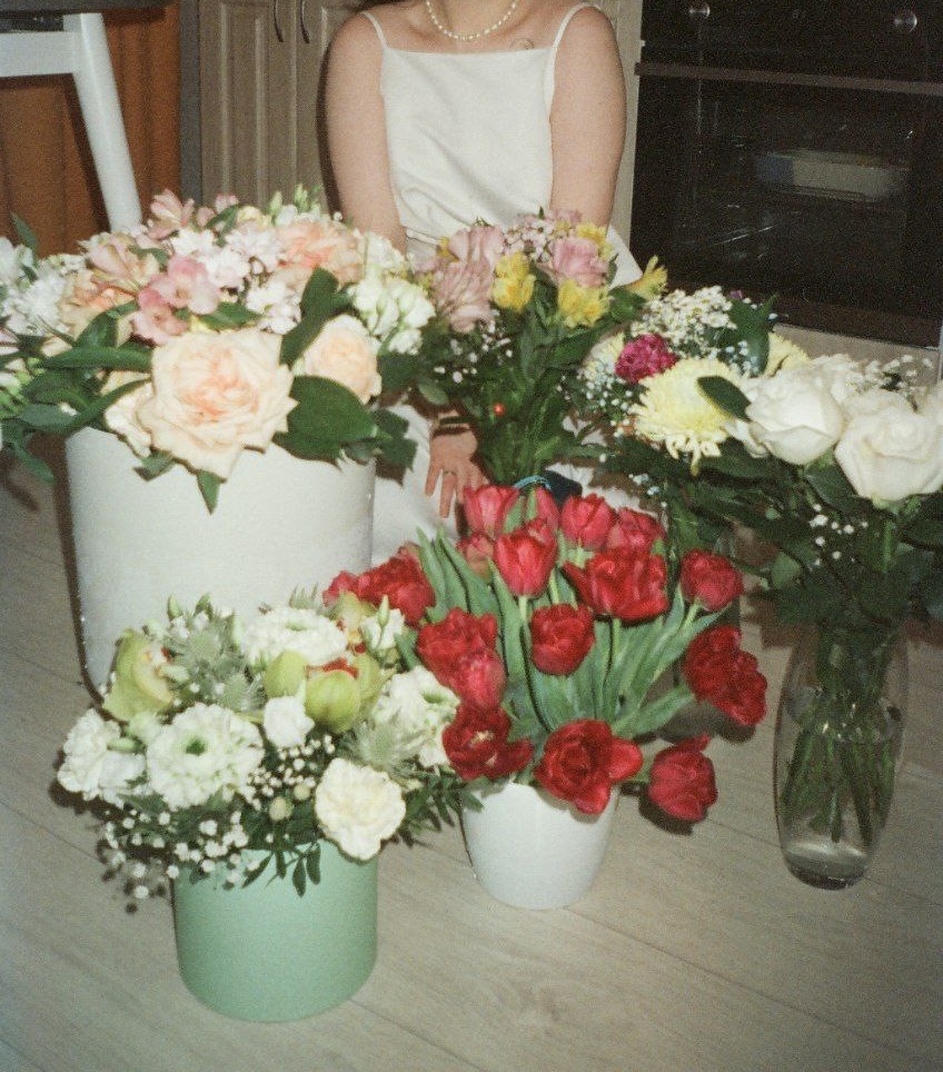 Так как свадьба у нас была накануне 8 марта мы решили купить цветы на базе и договорились с девушкой, что в день свадьбы мы закажем доставку и нам привезут цветы для дам, которые были у нас на свадьбе, заплатили за это мы 11391 руб.