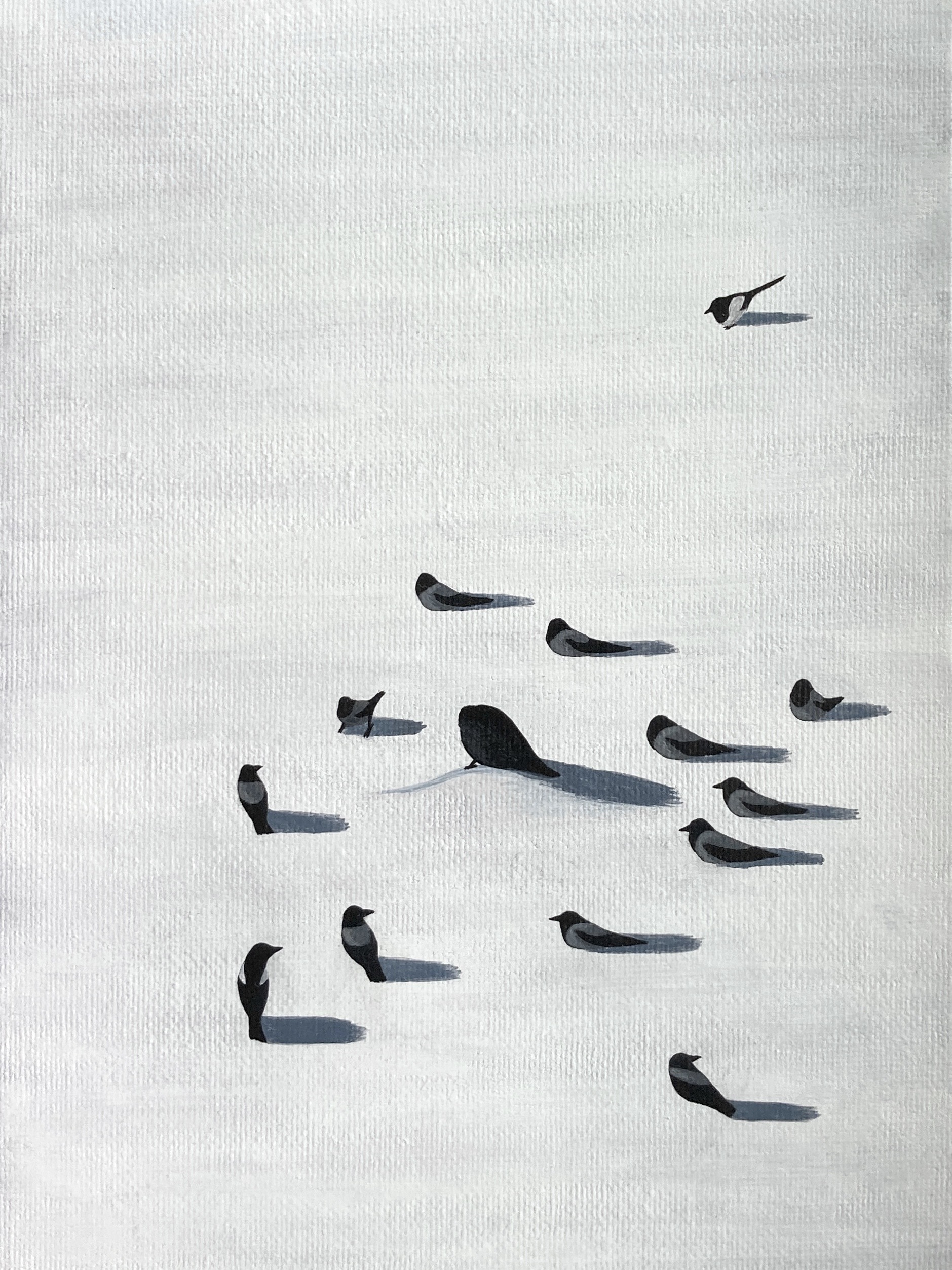 Почти сразу, как только я сделала это фото, поняла, что оно фото должно стать картиной. Люблю изображать животных в интересных ситуациях, а в этом случае даже придумывать ничего не пришлось. Правда, я до сих пор не могу понять, что это за существо такое посередине, так что пусть будет просто верховный птиц.