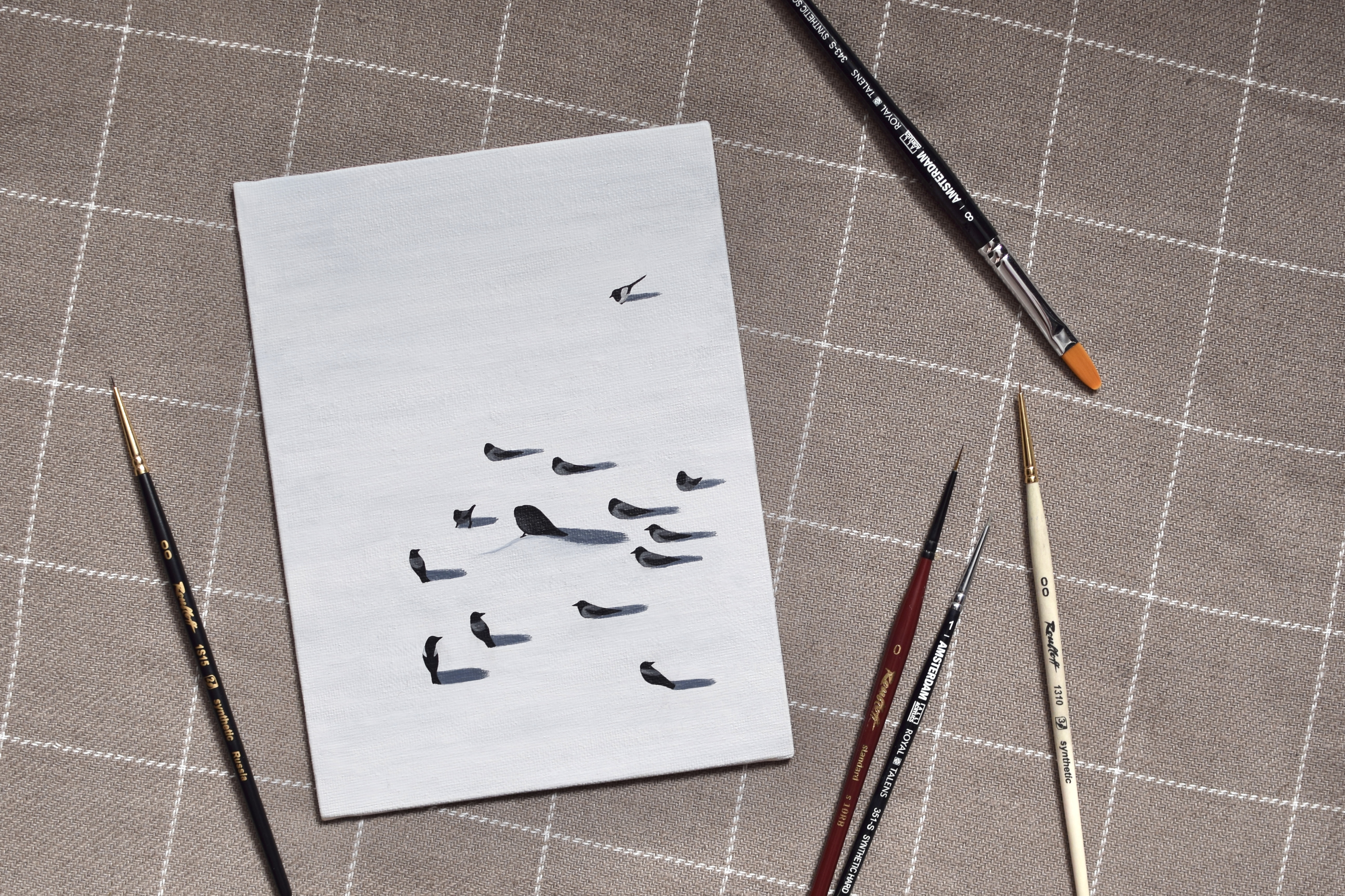 Работала над картиной несколько дней, но совсем по чуть-чуть, задействовала все свои крошечные кисти. Это одна из немногих работ, которым я устроила настоящую фотосессию: в начале того месяца купила новый объектив, и очень хотелось его протестировать.