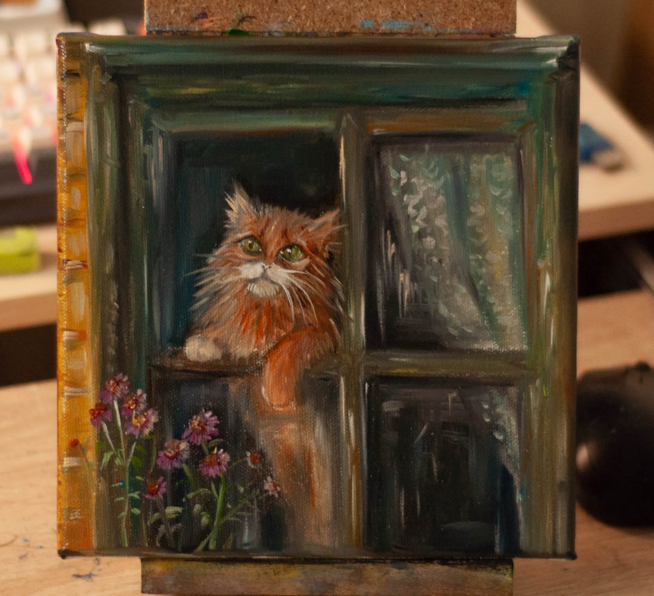 (Продолжаю искать интересные котосюжеты для вдохновения, которые потом превратятся в картины или забавные магнитики на холодильник). Поэтому, если есть интересные идеи — делитесь в комментариях. Буду рада их увидеть.