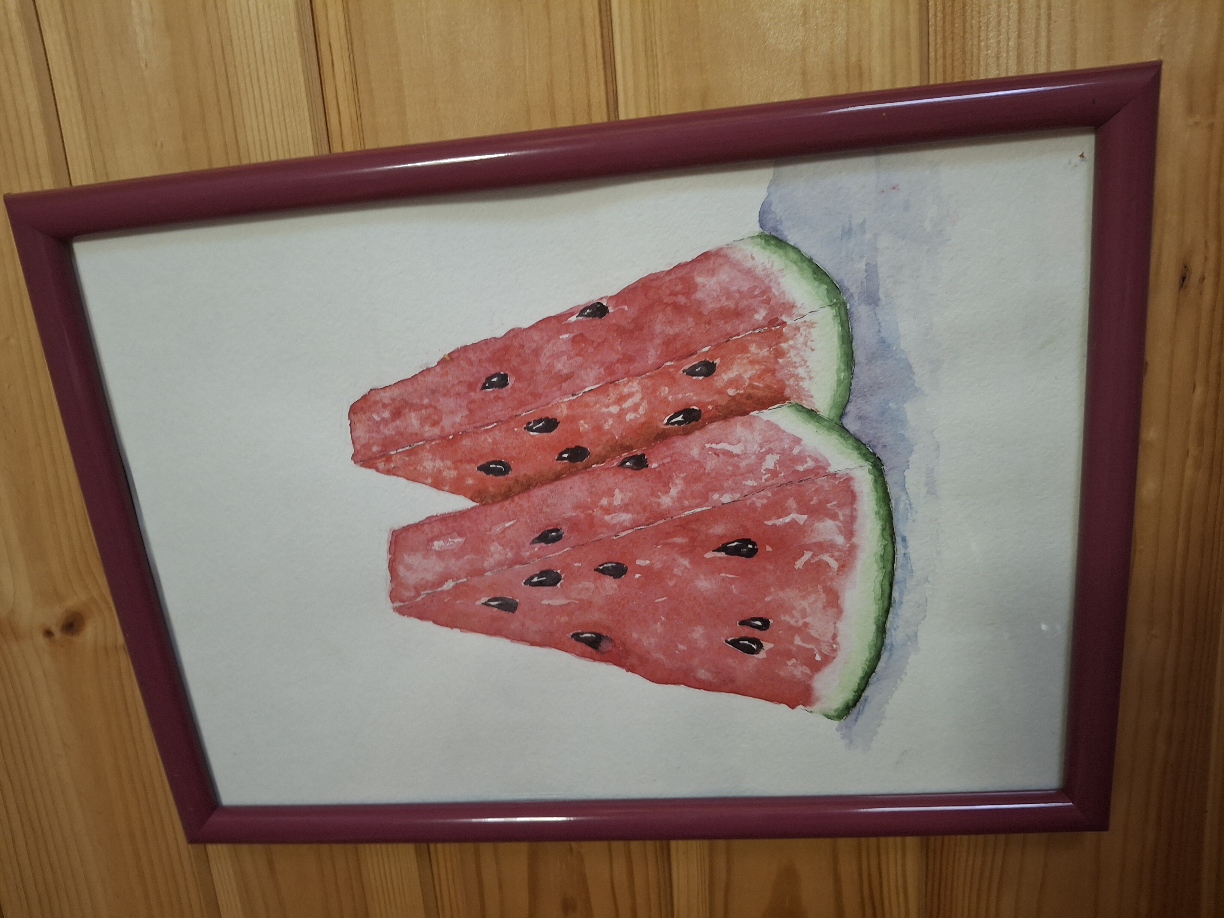 Акварель отличный материал для передачи сочности фруктов на срезе, а с помощью лесировки передать шероховатость или гладкость поверхности…Получаем вкусный рисунок…