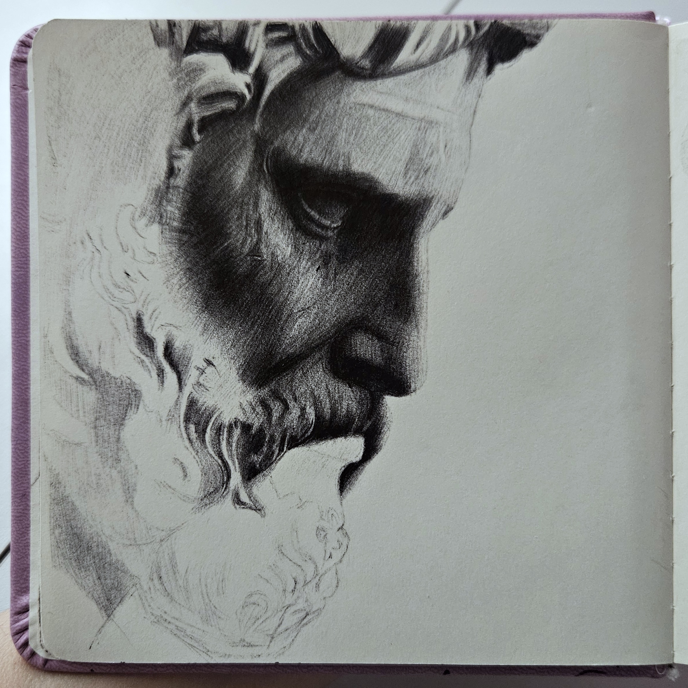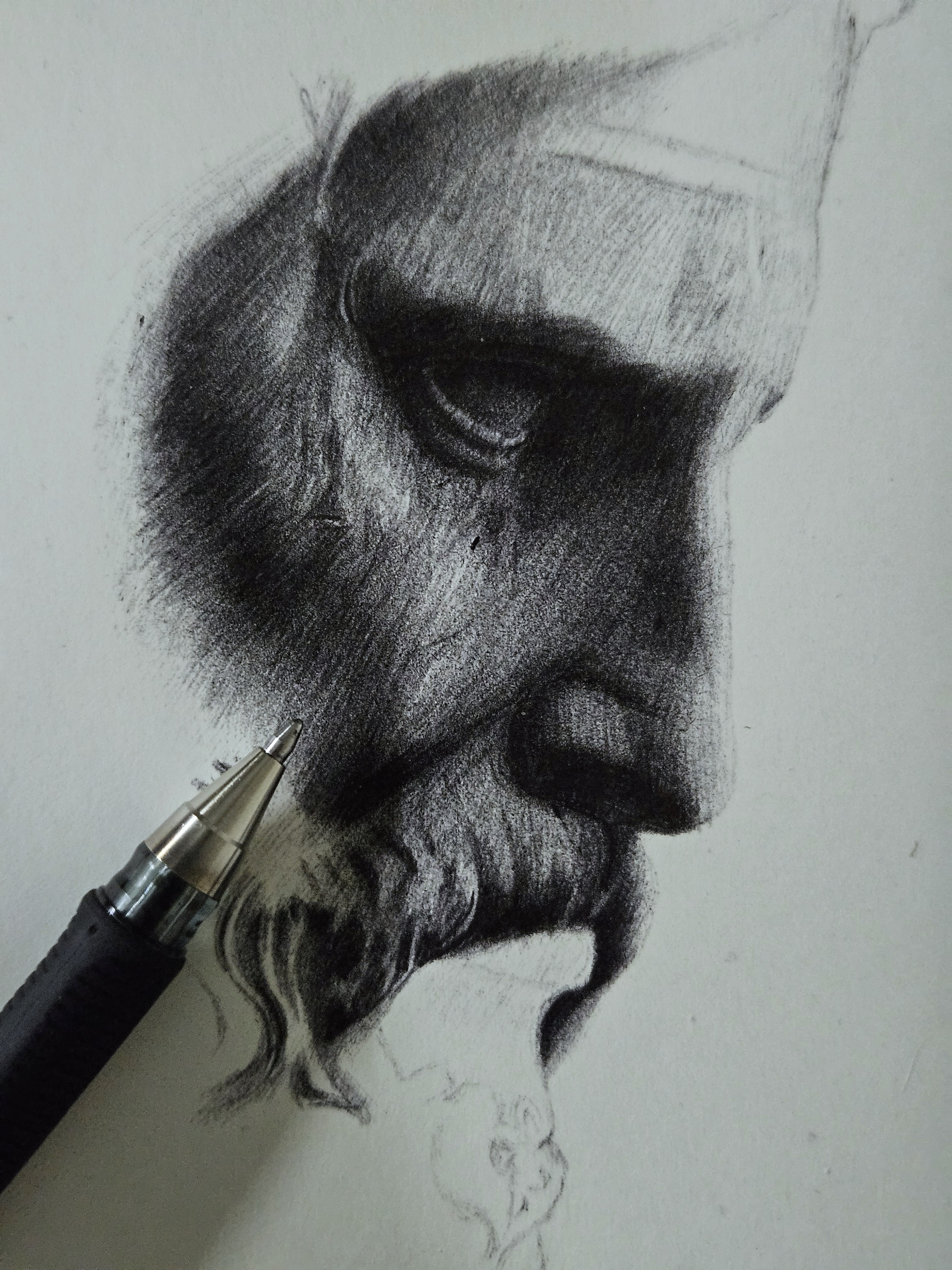 Мой рисунок: голова скульптуры черной шариковой ручкой