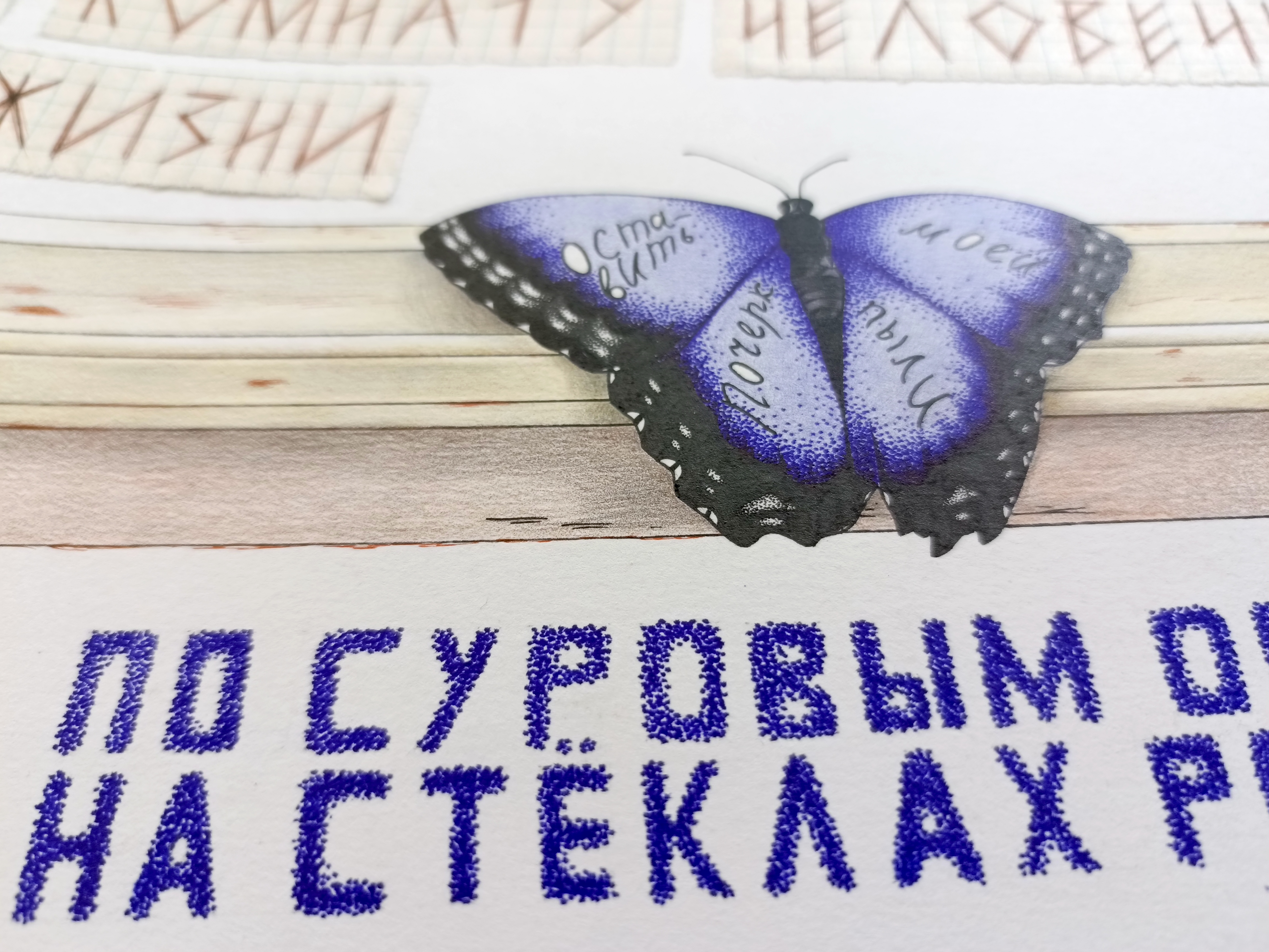 Я учусь в аспирантуре и пишу кандидатскую диссертацию о творчестве Велимира Хлебникова. В октябре прошлого года приняла участие в международных Хлебниковских чтениях, а позже нарисовала иллюстрацию к стихотворению «Мне, бабочке, залетевшей…». Когда-то я всерьез увлекалась рисованием, но забросила это хобби из-за упадка душевных сил. Приятно было увидеть, что после четырехлетней паузы я всё еще могу водить карандашом по бумаге.