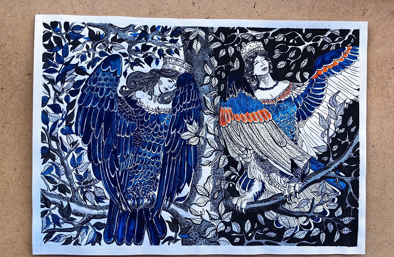Мой рисунок: интерпретация работы Васнецова «Сирин и Алконост. Песнь радости и печали»