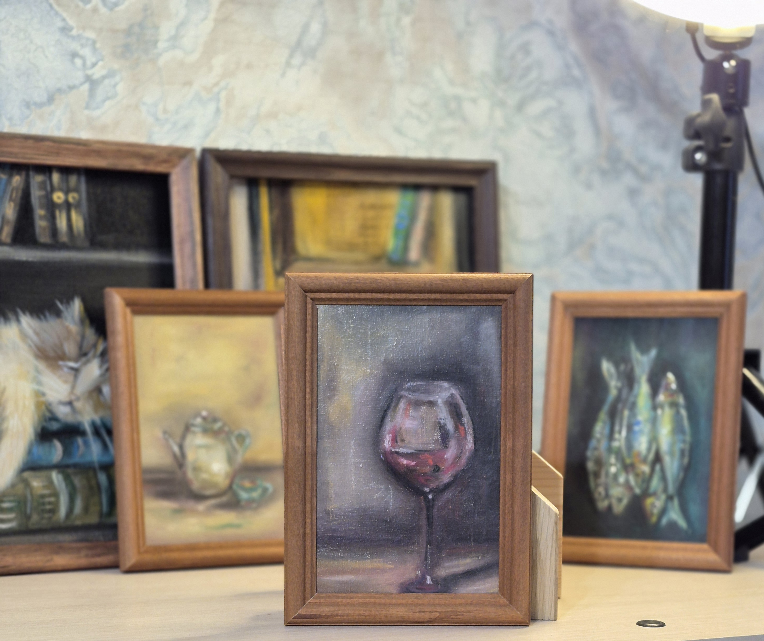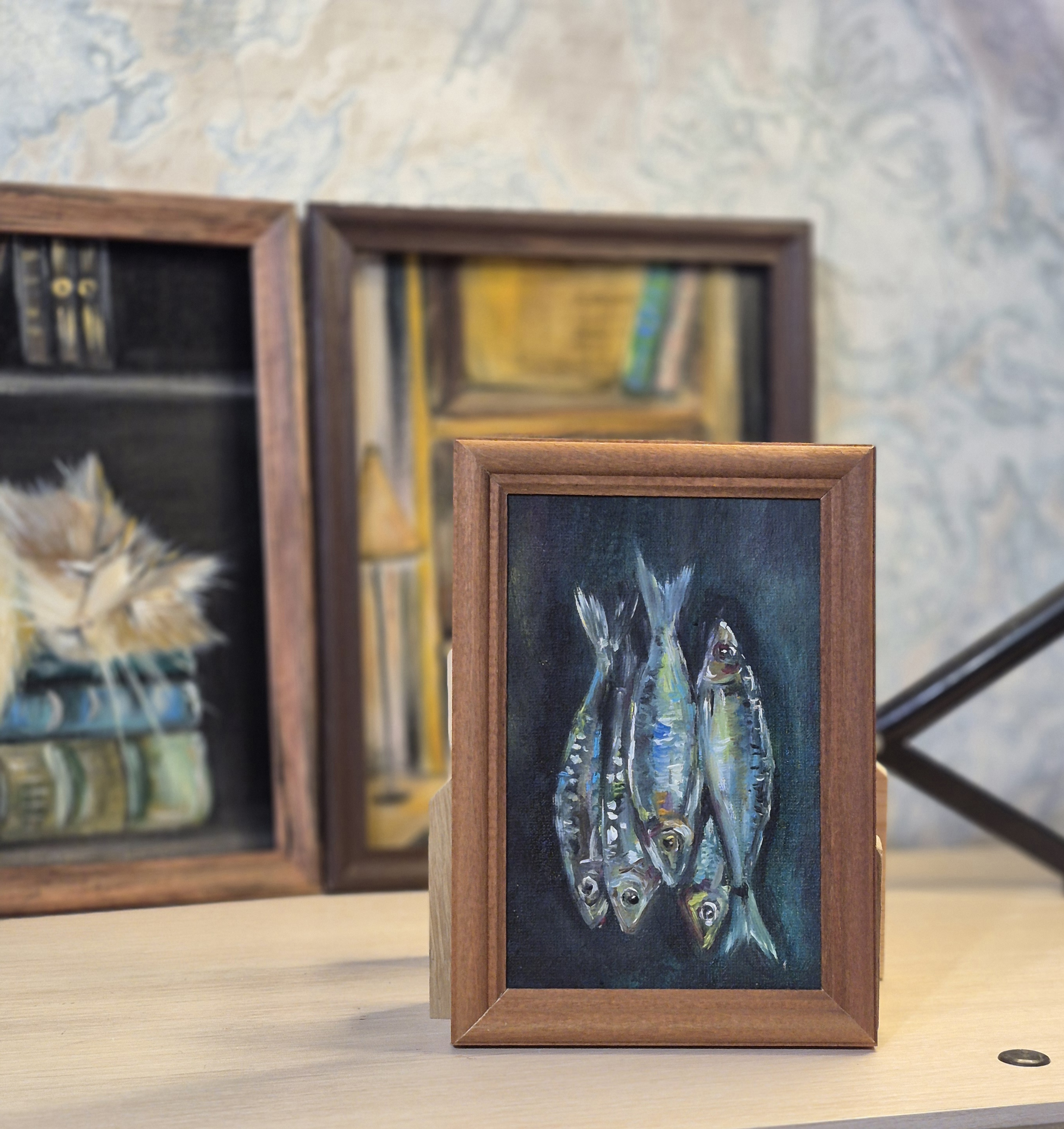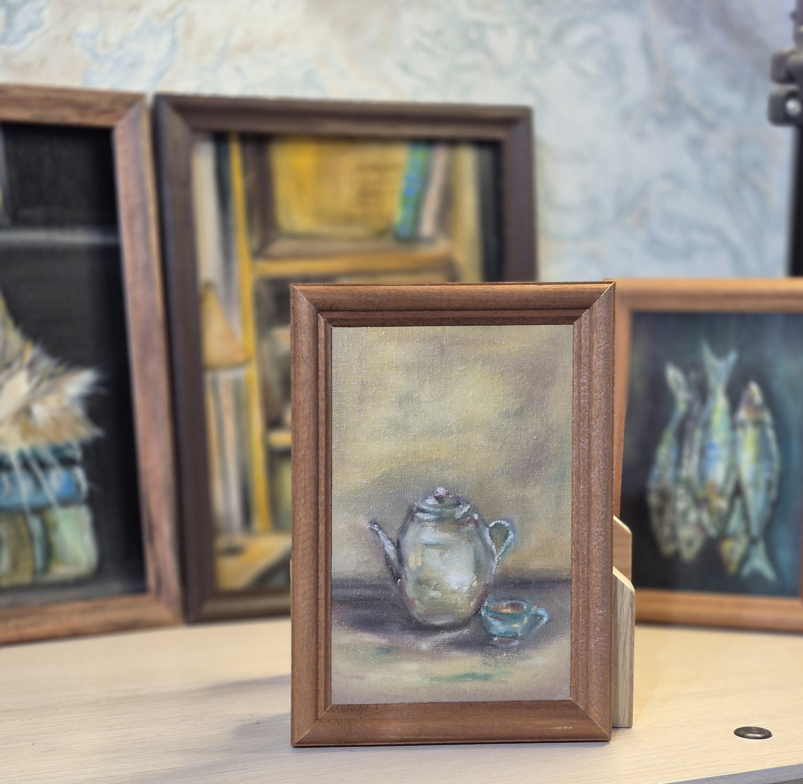 Люблю создавать различные миниатюры в разных техниках живописи. В данном случае масло и в некоторых работах плюсом масляная пастель. Без рамки было ничего, но с ней получше.