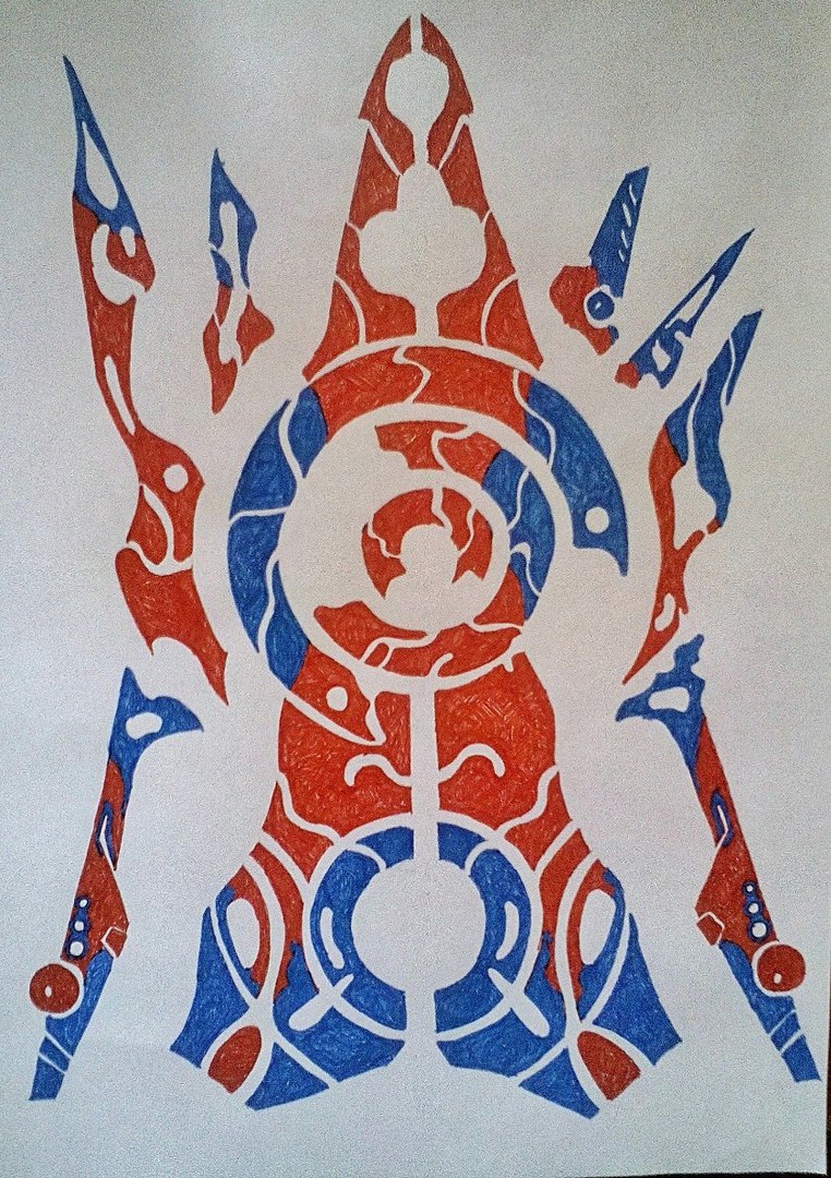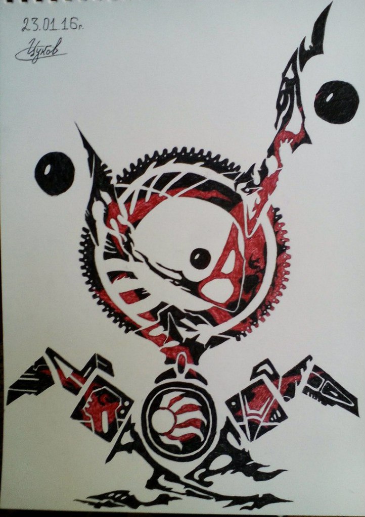 Как это происходит. Однозначно спонтанно. В один прекрасный момент я понимаю, что хочу нарисовать очередную закорючку. Беру лист бумаги, карандаш, включаю музыку и сажусь рисовать. У меня нет изначального видения общей… гармонии\компоновки\формы\ раскраса. Я просто начинаю с одного элемента, а потом думаю, как бы его «развить»; в голове появляется очень аморфная картинка желаемых параметров для отдельного «блока». К нему приращиваю ещё что-нибудь, устраивающее мои эстетические представление о красоте и гармонии абстрактного. Получается эдакий экспромт от мира геометрии.
