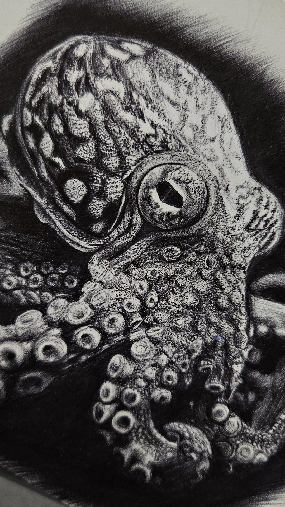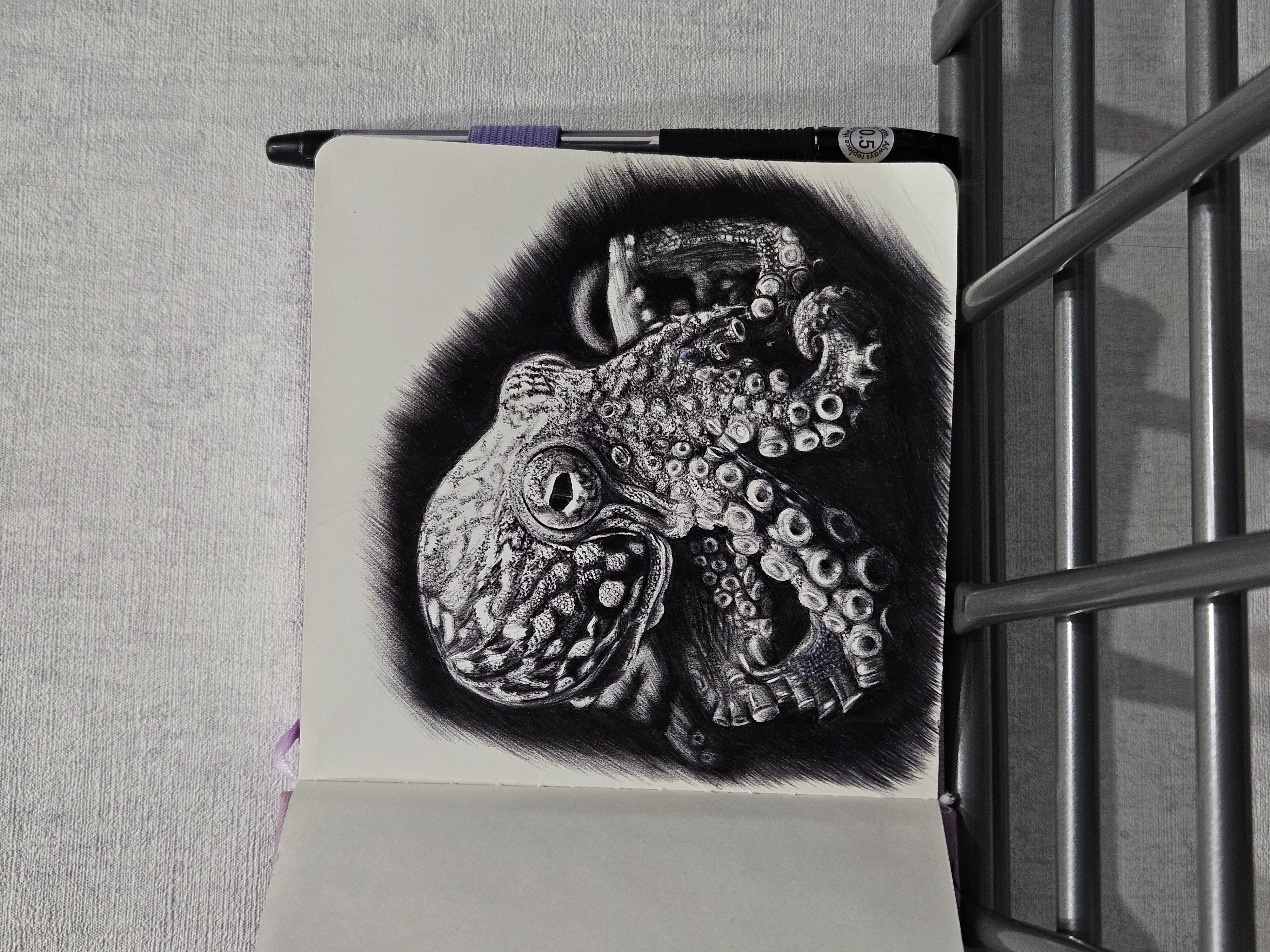 Мой рисунок: осьминог черной шариковой ручкой