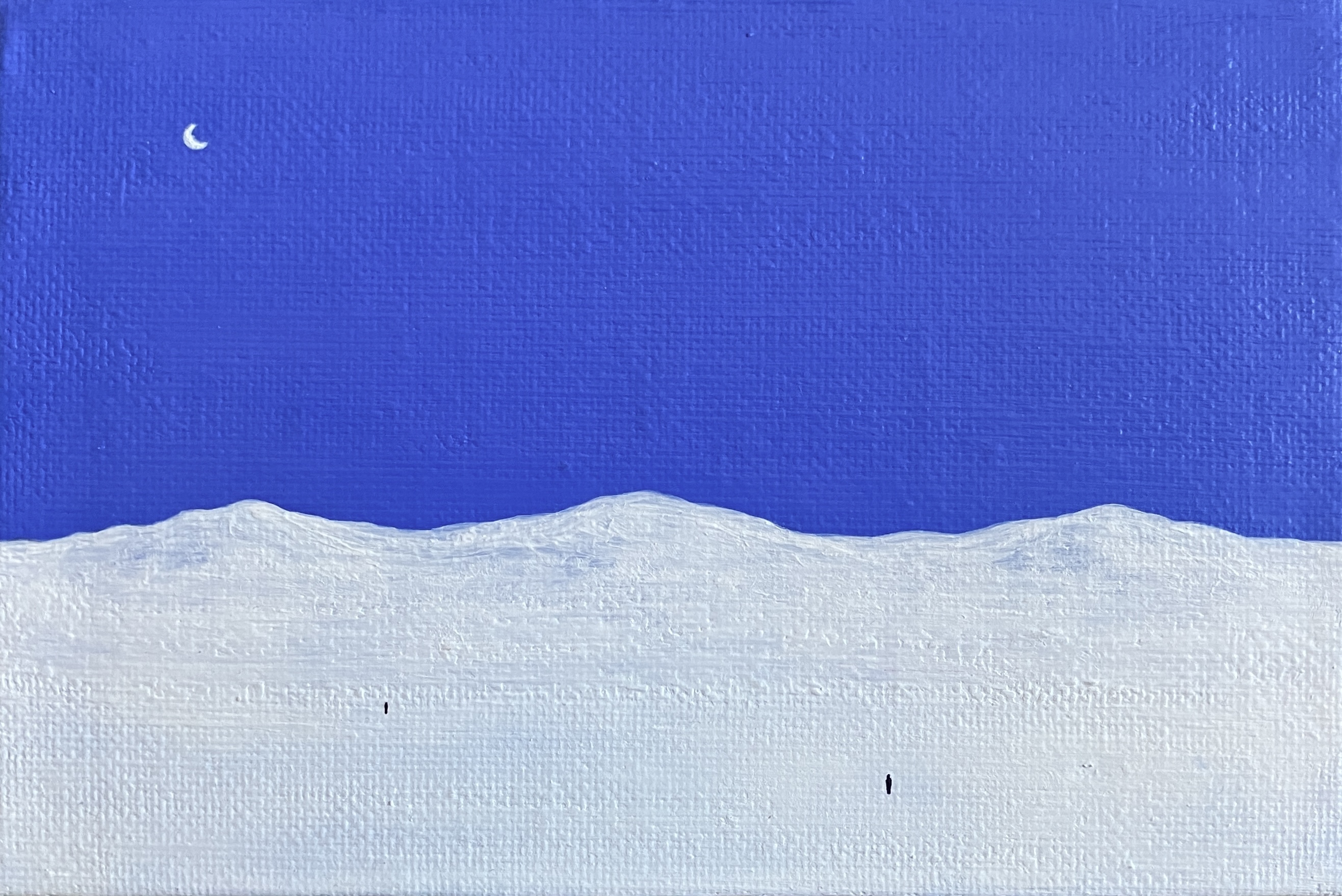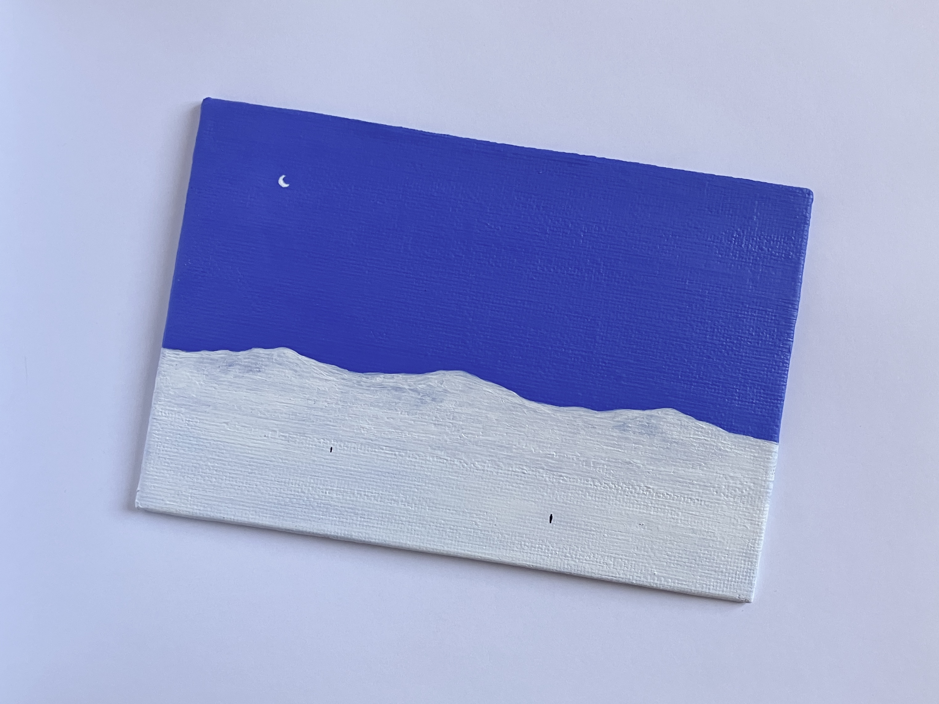 Придумала этот сюжет, когда перебирала идеи для крошечных картин на магнитах. Он показался мне жутким, но недостаточно выразительным в микроформате, так что пришлось купить холст побольше.