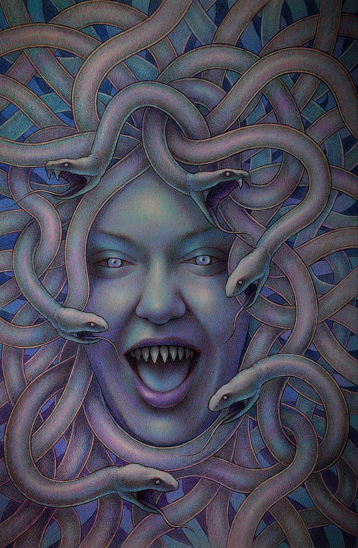 Мой рисунок: портрет девушки в образе Медузы Горгоны шариковыми ручками
