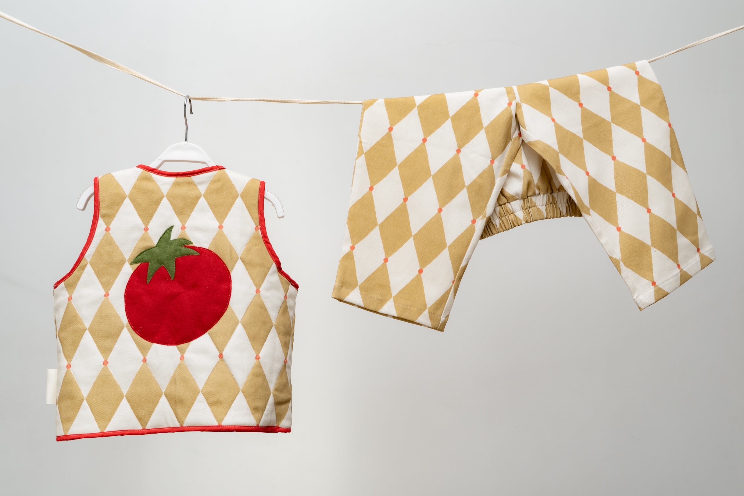 Первый год мы делали базовую детскую бежевую одежду и довольно быстро поняли, что эта идея морально устарела. Решили попробовать принты, яркость и сочетание цветов, но без перегибов в шик. Сейчас наша фишка — в собственных принтах, которые придумывает и рисует Женя.