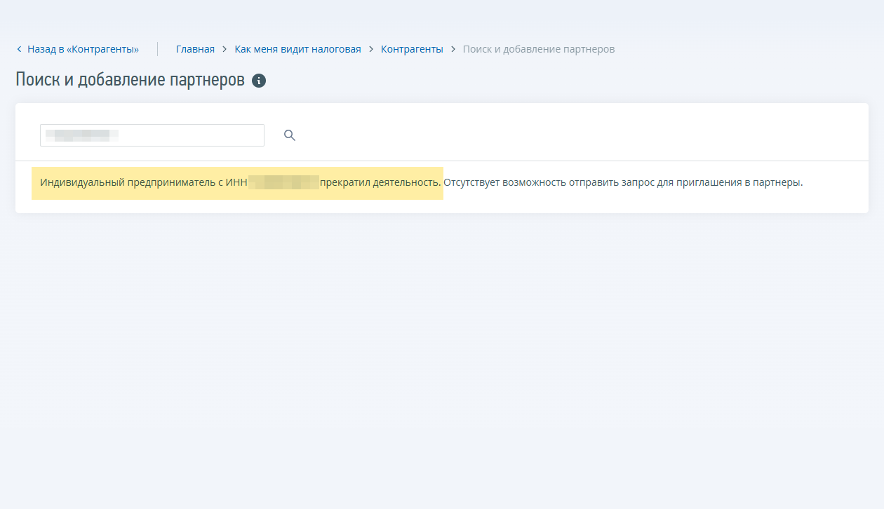 | Как трактовать результат | Контрагент включен в реестр недобросовестных поставщиков. Нужно проверить по ИНН причину включения в реестр. Если из-за расторжения контракта — сотрудничество сомнительно, лучше уточнить у партнера детали |