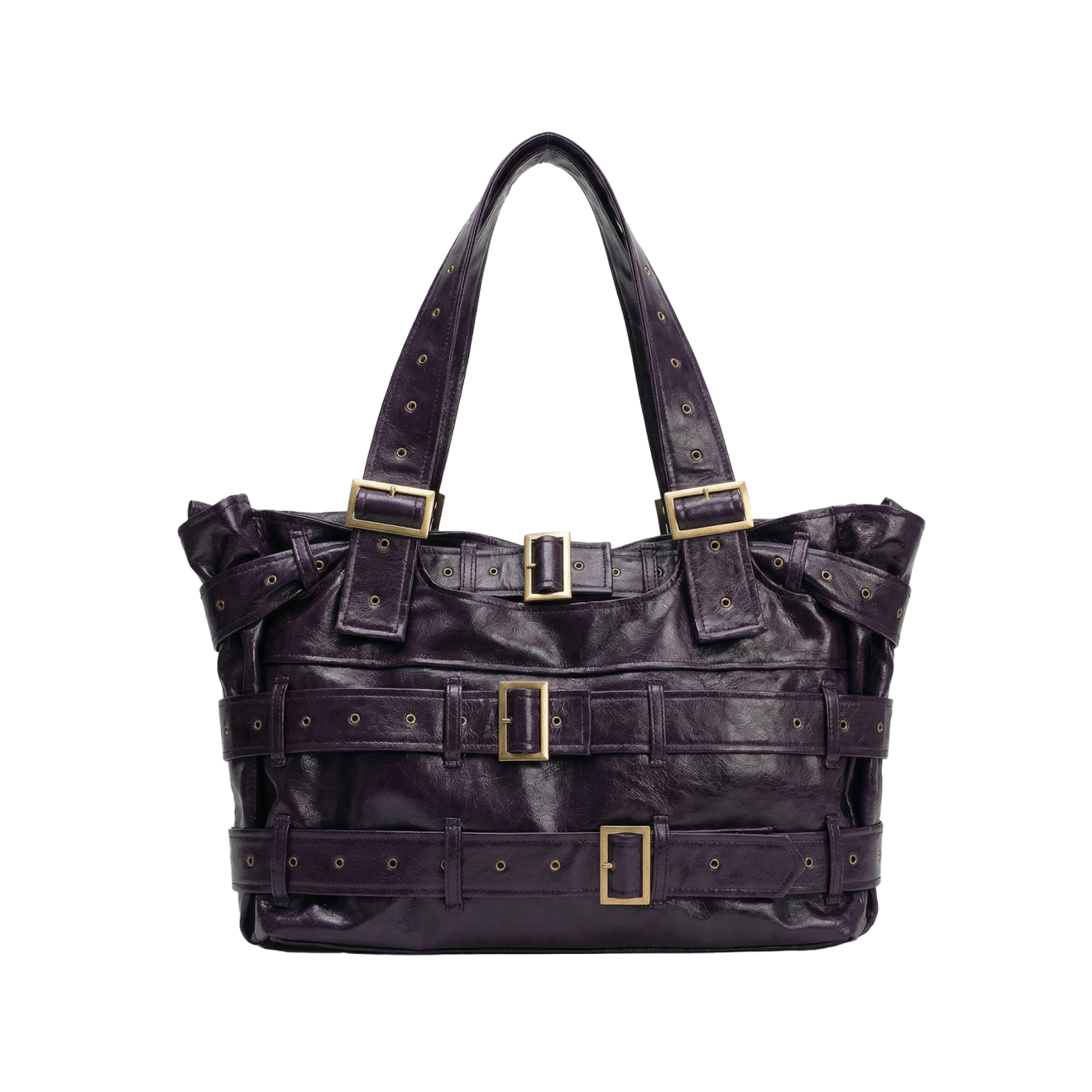 Сумка «Синяк» фиолетово-чернильного цвета с эффектом влажного блеска сделает выдающимся даже самый базовый лук. Мягкая глянцевая экокожа красиво мнется и выглядит расслабленно, а ремни с пряжками добавляют ей гранжа. Форма аксессуара тоже невероятно удачная: тоут — самая удобная сумка на каждый день