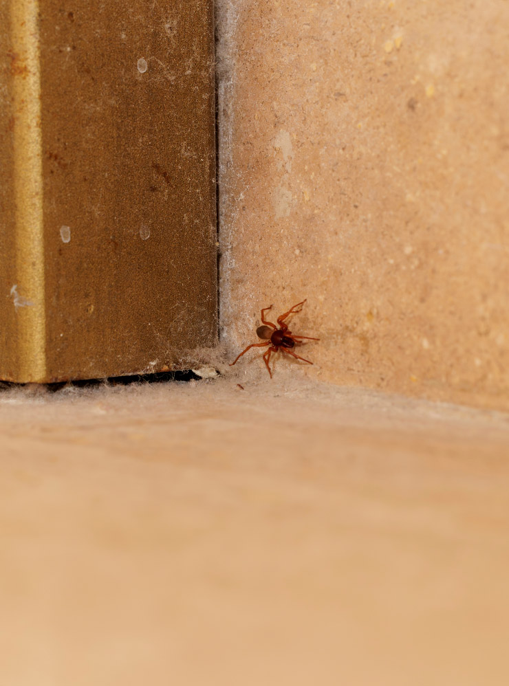 Они выбирают теплые и влажные места, где есть пища. Обычно это еще и укромные территории: под столом, за диваном, шкафом или дверью. Могут и просто висеть на паутинной ниточке с потолка.