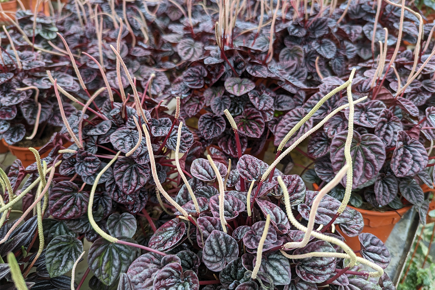 Главная ценность пеперомии — в разнообразии листьев. У пеперомии сморщенной они образуют глубокие гофрированные складки, у пеперомии «россо» листья имеют контрастную красно-зеленую окраску, а пеперомия «гравеоленс» поражает необычными «лодочками» из толстых листьев с красной изнанкой.