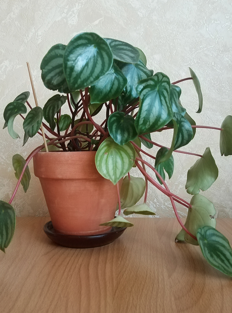 Я пробовала выращивать арбузную пеперомию на фитильном поливе, но неудачно: нижние листья начали загнивать. Позже узнала, что именно такие виды с розеткой наиболее чувствительны к переувлажнению. А еще — суккулентные виды.