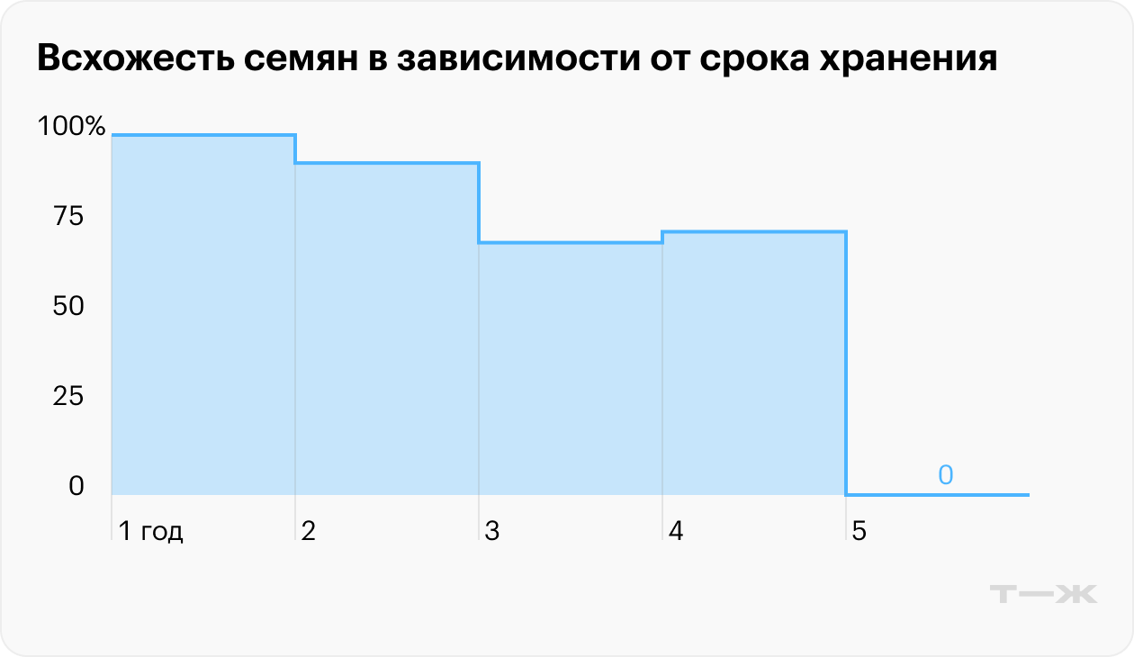 Бывают и редкие исключения, когда семена всходят и после 4—6 лет хранения. Все-таки это живые организмы, которые порой совершенно непредсказуемы.