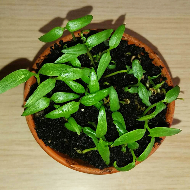 Примерно через месяц после появления всходов, когда у сеянцев вырастает первая пара настоящих листьев , а корни заполняют почти весь объем ячейки в кассете, их пикируют, то есть рассаживают по стаканчикам побольше.