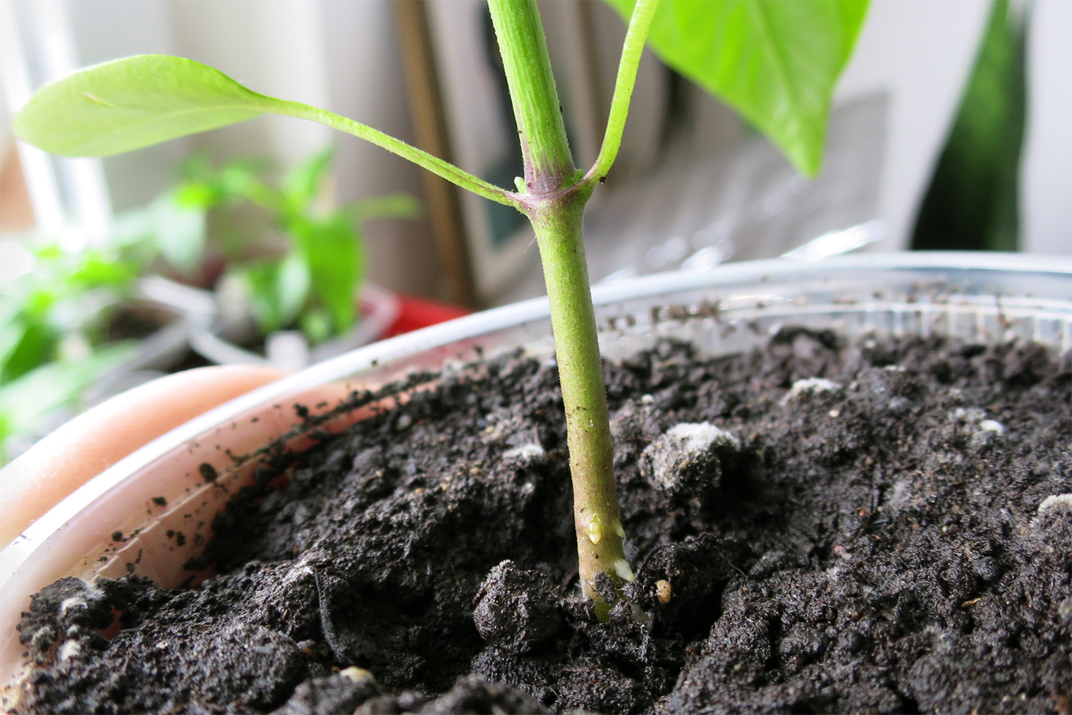 Объема 100 мл мало для качественной рассады, но приемлемо для ее существования и даже для получения урожая. Для крепкой рассады нужен объем 500—600 мл, но такие стаканы занимают много места на подоконнике, поэтому я пересаживаю в них уже подросшие растения.