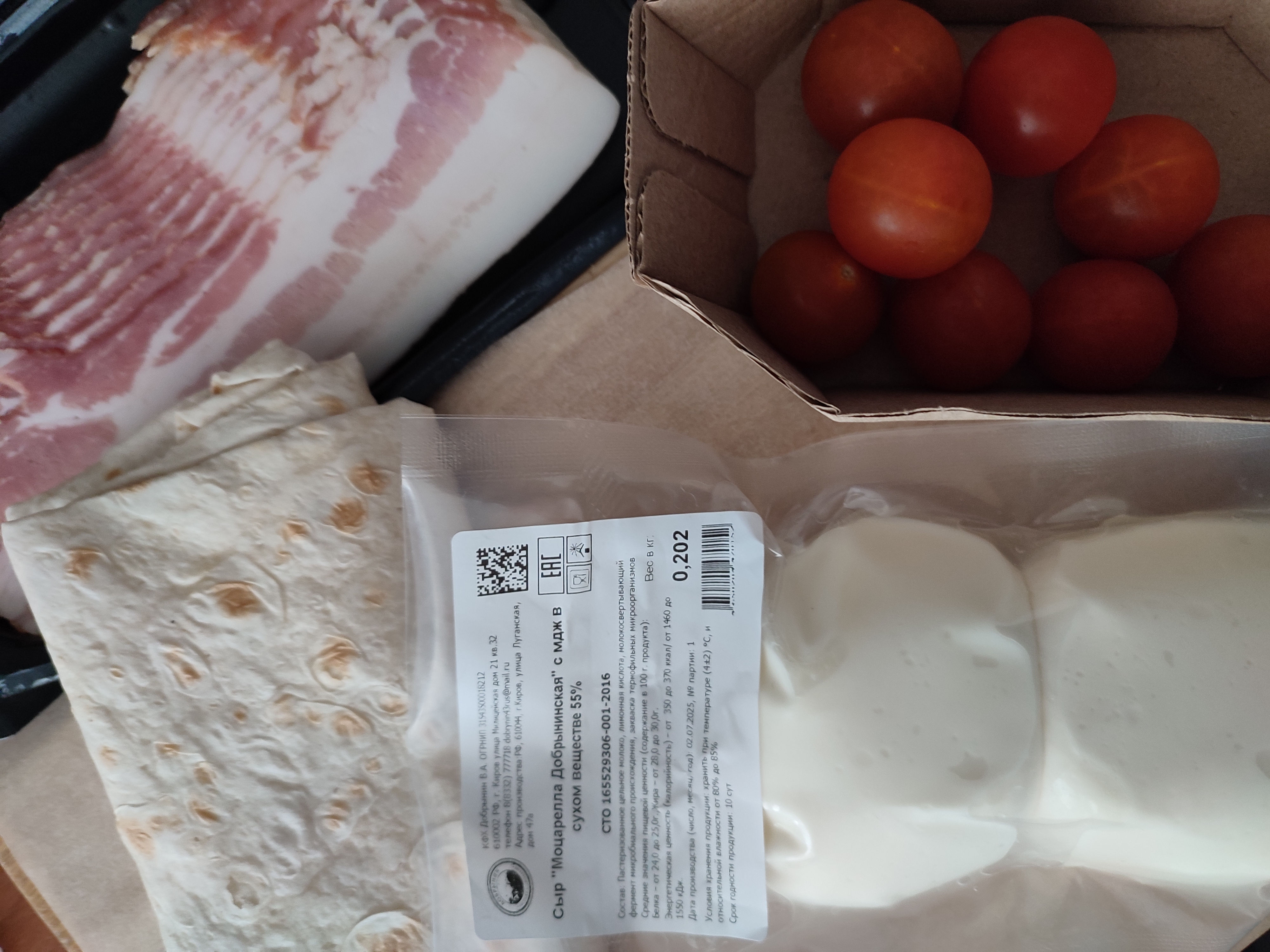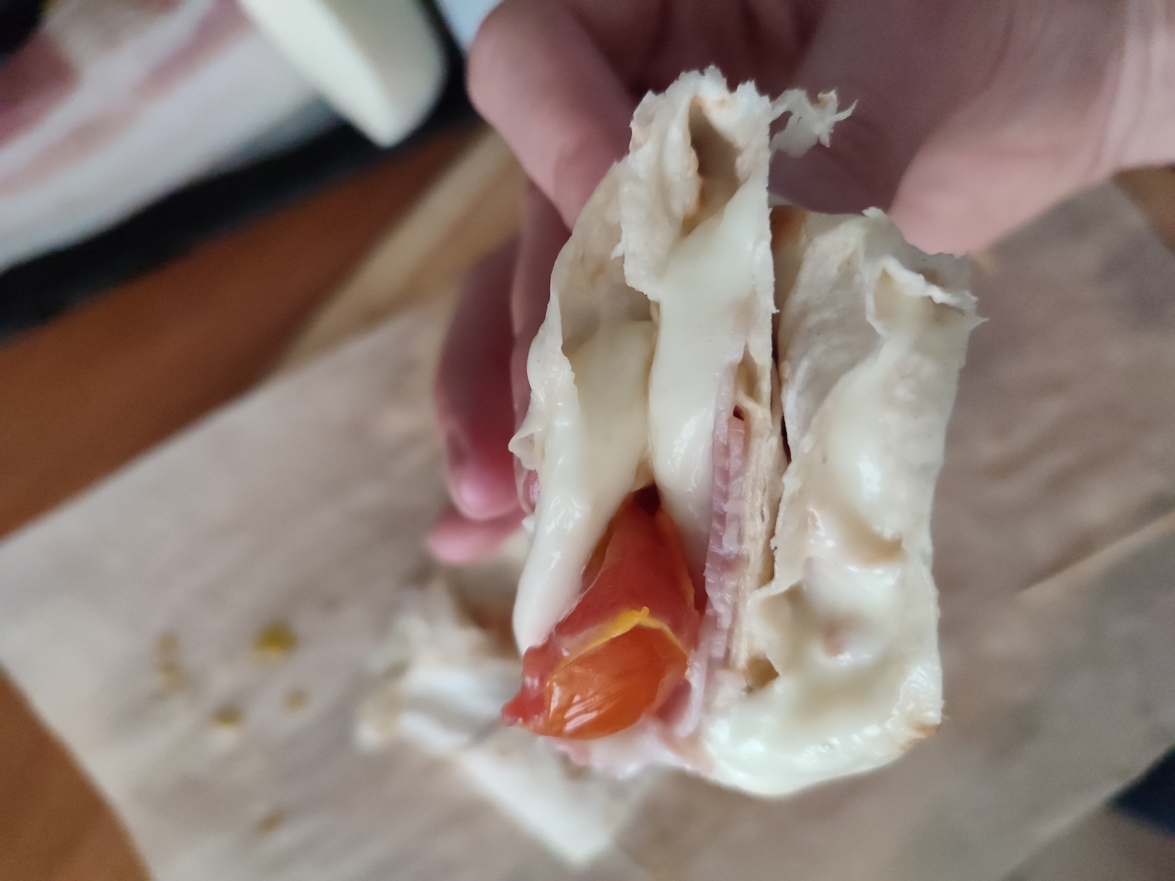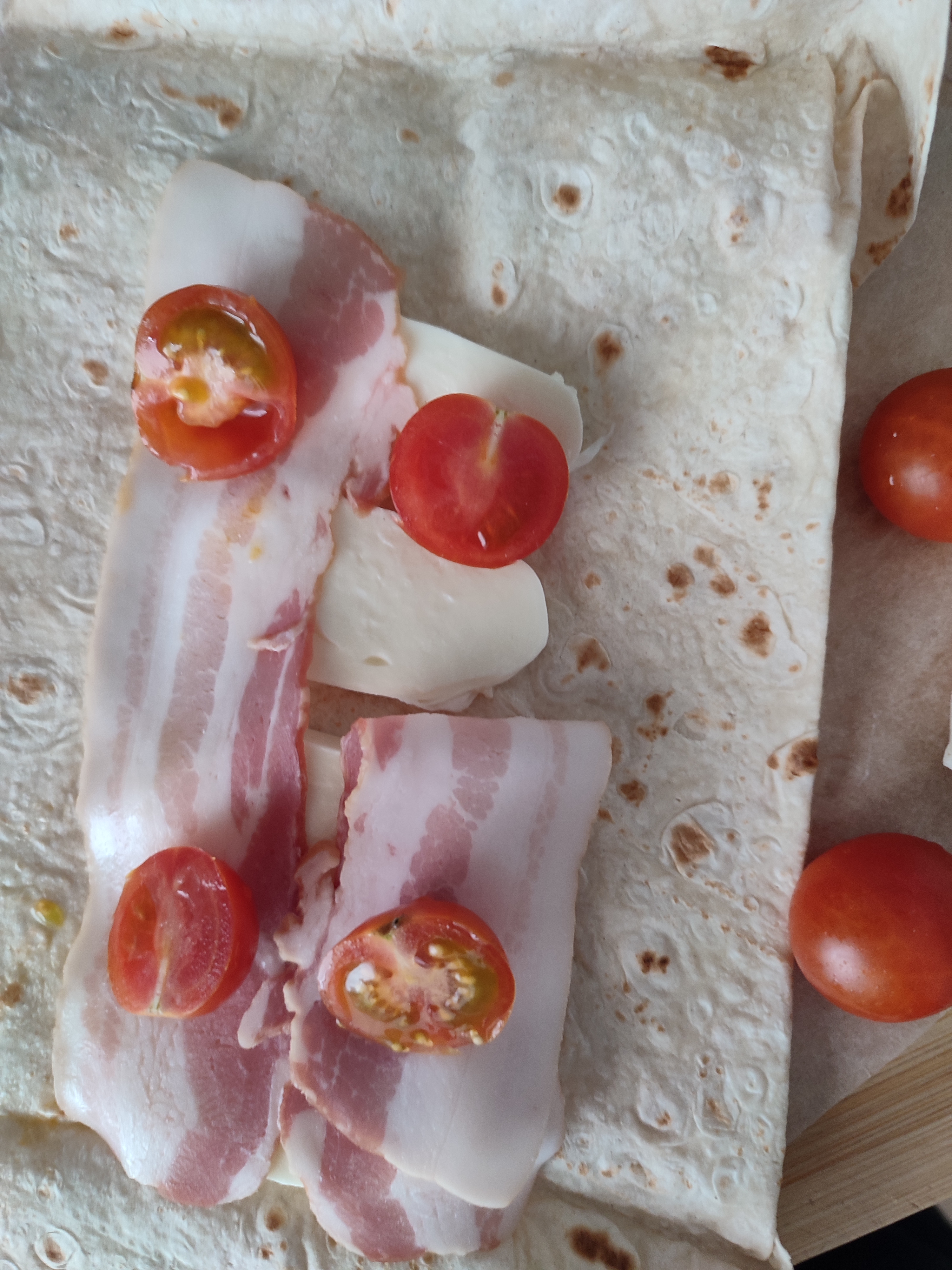 Мой перекус: лаваш с моцареллой, черри и беконом