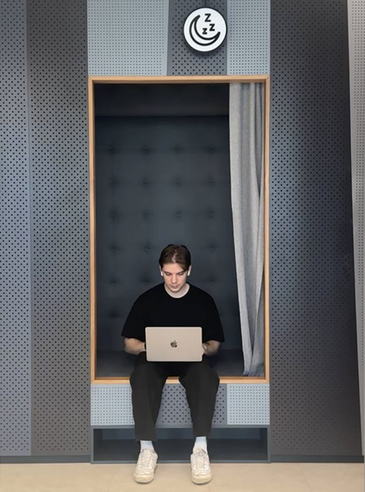 Мне очень нравится офис Т‑Space — команда переехала туда полтора года назад. Стараюсь приходить каждый день, хоть это и не обязательно. Я кайфую от личного общения с коллегами из смежных команд, люблю атмосферу переговорок и очных встреч. Здесь я могу поесть, потренироваться в спортзале и разгрузить голову в зоне отдыха — это уменьшает когнитивную нагрузку и освобождает ресурсы на более важные дела.