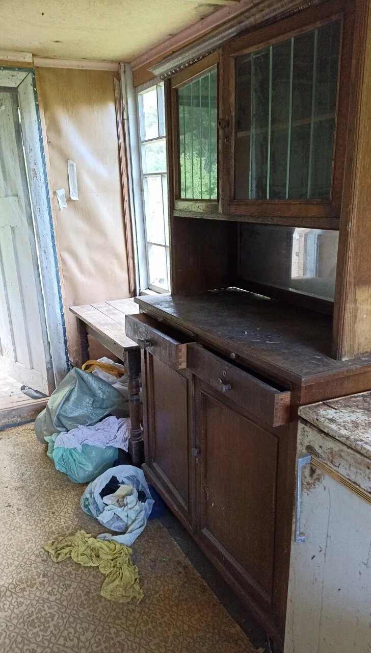 Из найденного в домике, что было интересным? Большой деревянный буфет в хорошем состоянии, его надо пошлифовать только. Мне у него понравились выдвижные доски для резки.