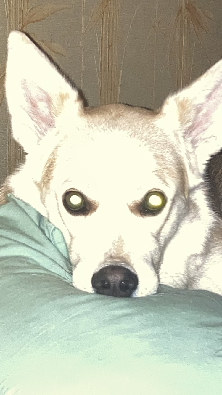 Не люблю снимать со вспышкой, но мне кажется, в этом фото прекрасно всё: светящиеся глаза, огромные уши и, конечно же, ноздри✨