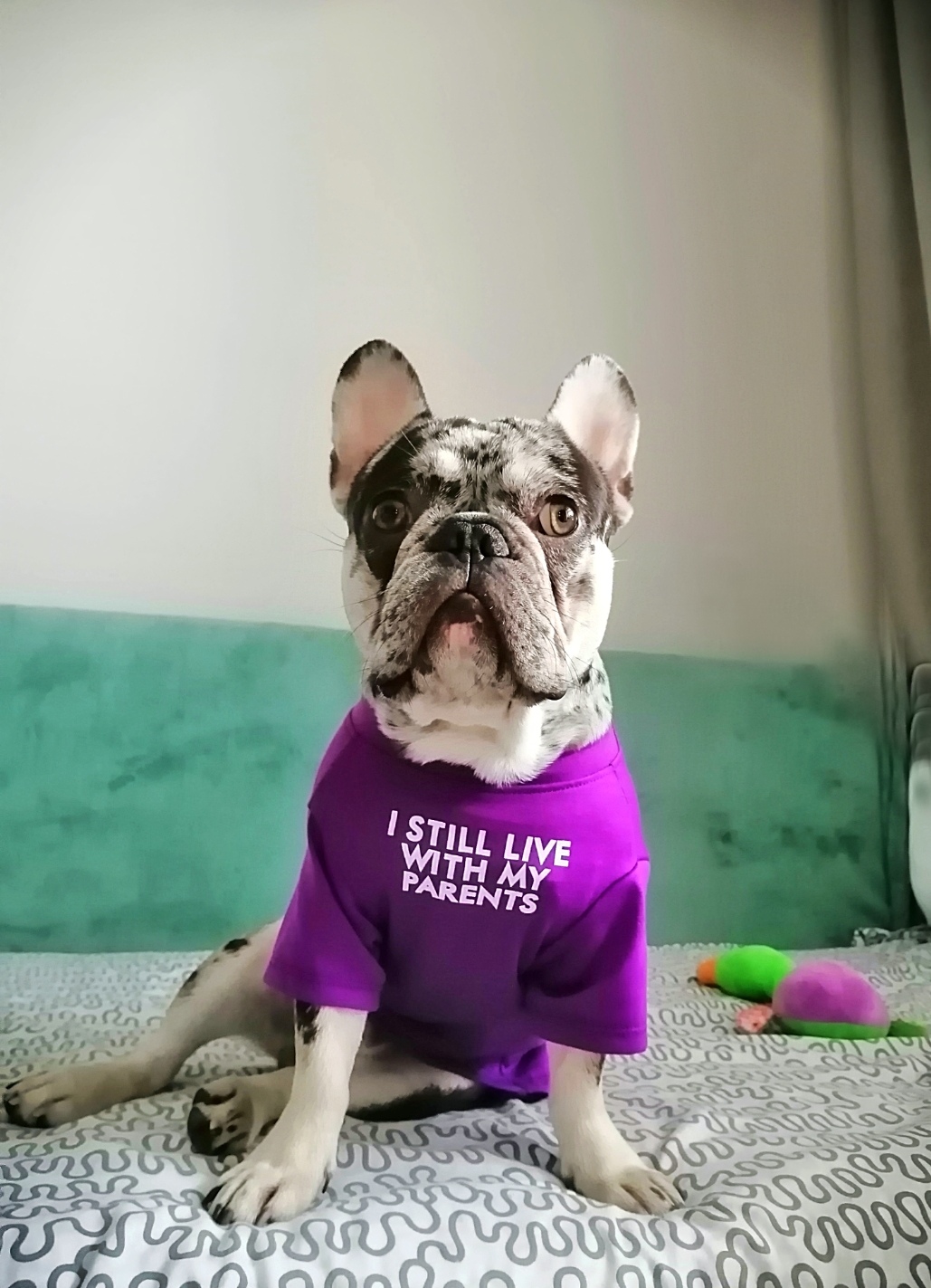 Фото питомца: пес Байт примеряет футболку