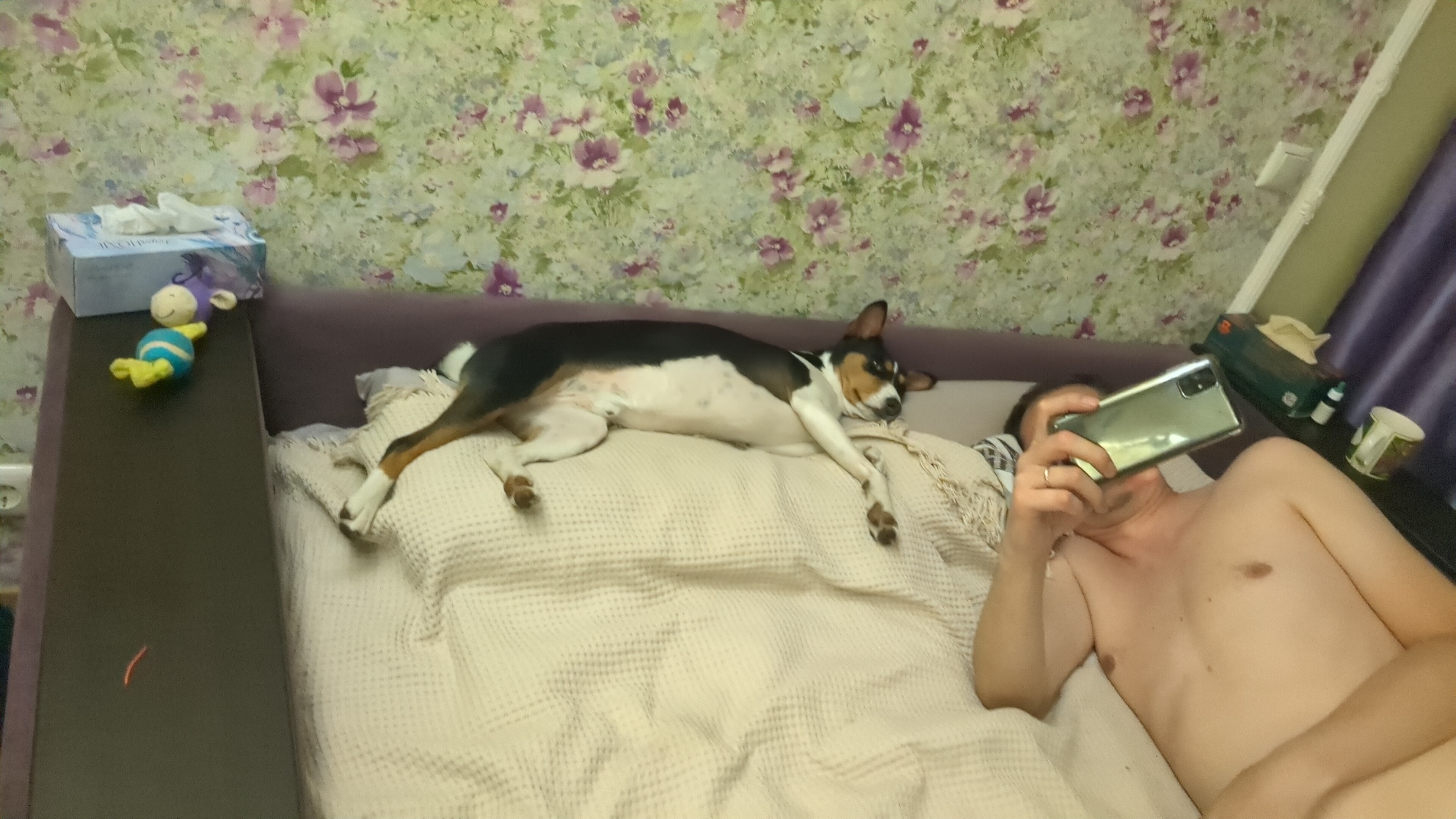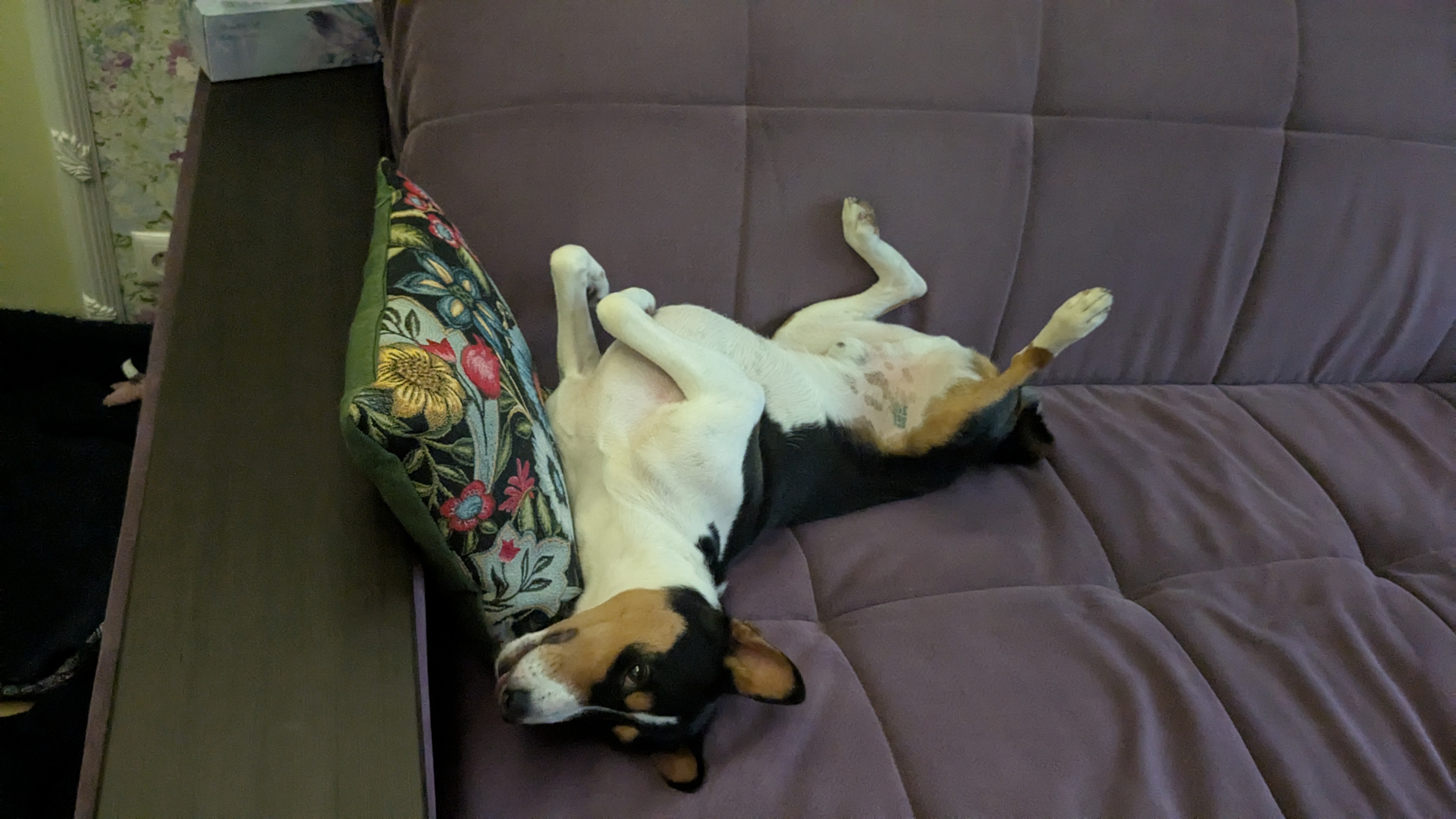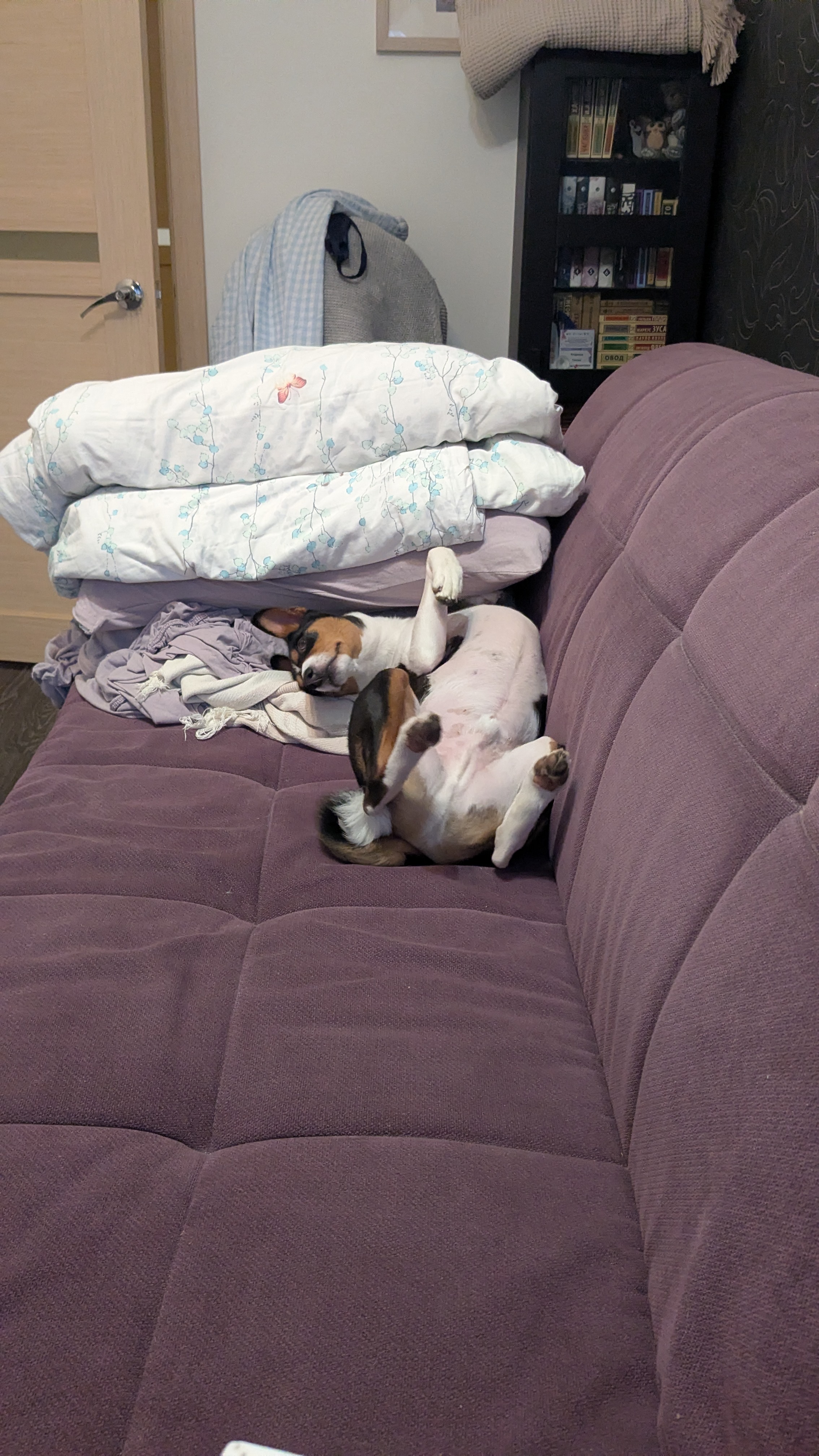 Фото питомца: пес Бостон становится хозяином квартиры на зимний сезон и занимает все диваны