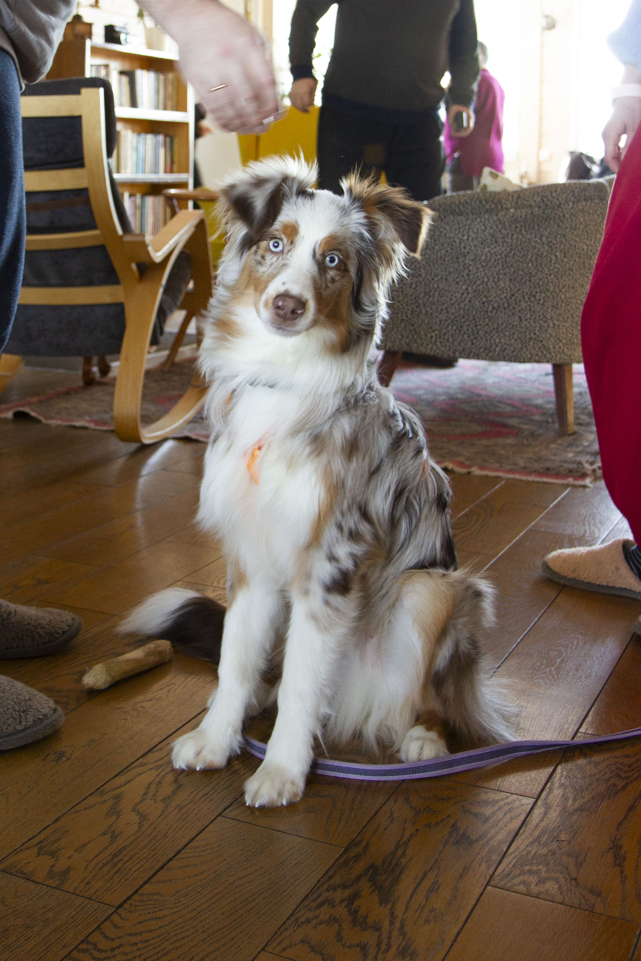 Малыш тут пользуется популярностью: гости дачи все время подходят и говорят, какой красивый пес. Сириус — дружелюбный и добродушный и всегда рад новым знакомствам, хотя сначала может немного смущаться.