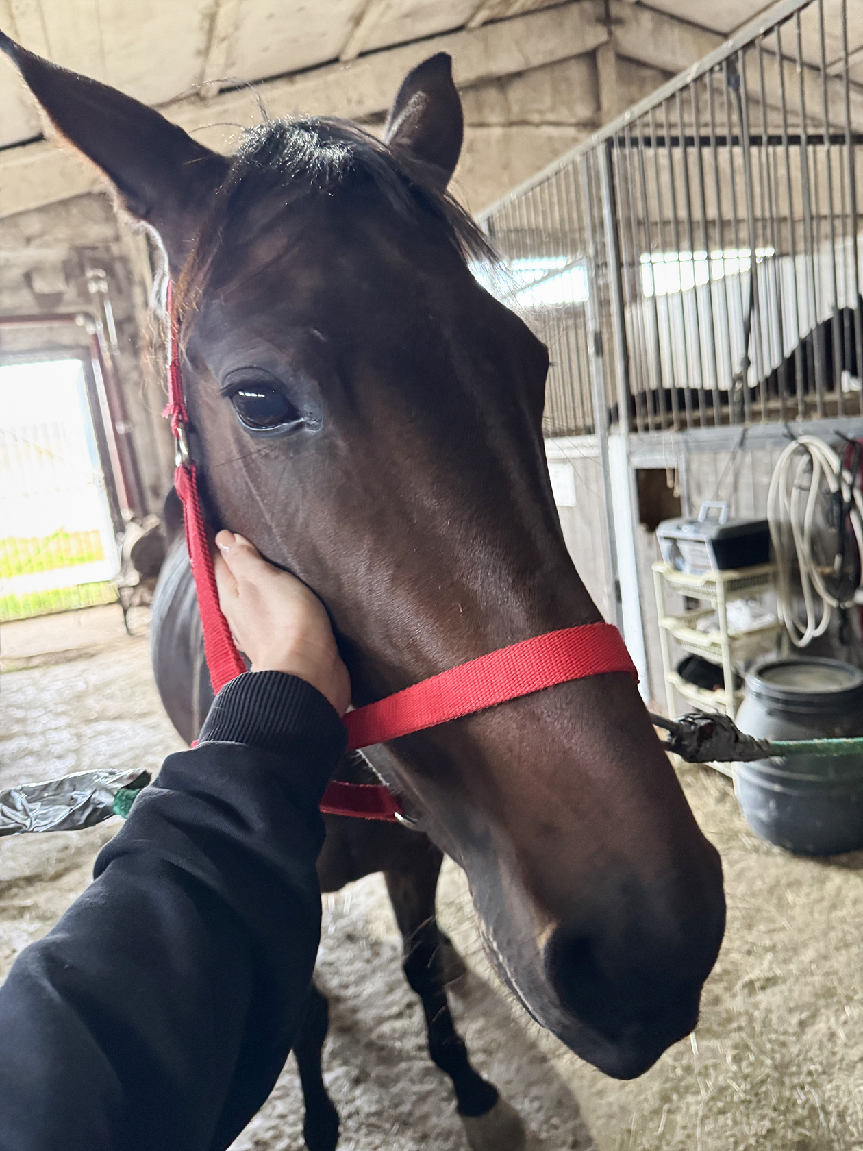 Мы перевезли ее в новую конюшню. В планах — научить лошадь выполнять команды, держать всадника и слушаться его. По характеру Грета — девочка-девочка. С ней надо мягко, ласково, постоянно разговаривать. Лошадь хорошо относится к нам, мы постоянно рядом, и ей спокойно. Уже очень ее полюбили.