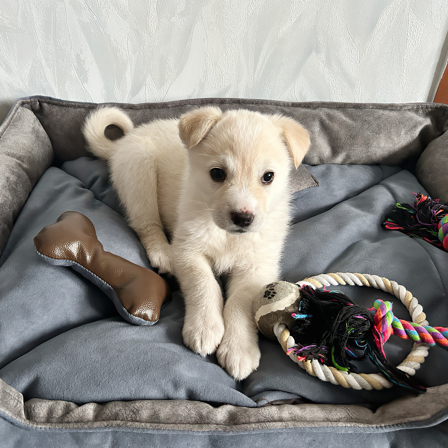 Я просто шла в пункт выдачи заказов в апреле прошлого года, когда по дороге мне встретился очаровательный белый щенок, который доверчиво ринулся ко мне. Он был совсем крохой и очень красивый, я не смогла оставить его на улице.