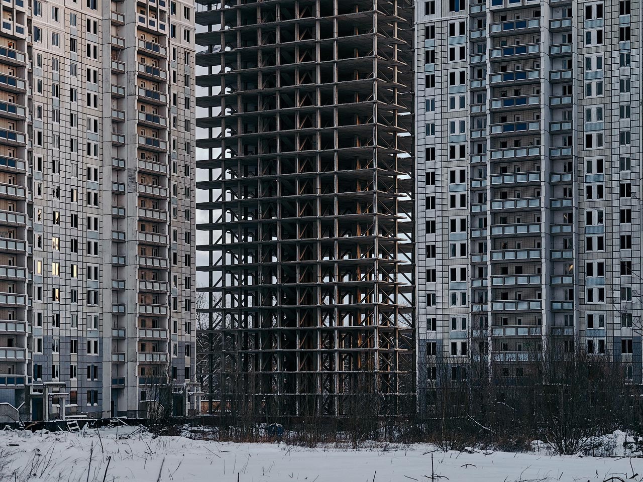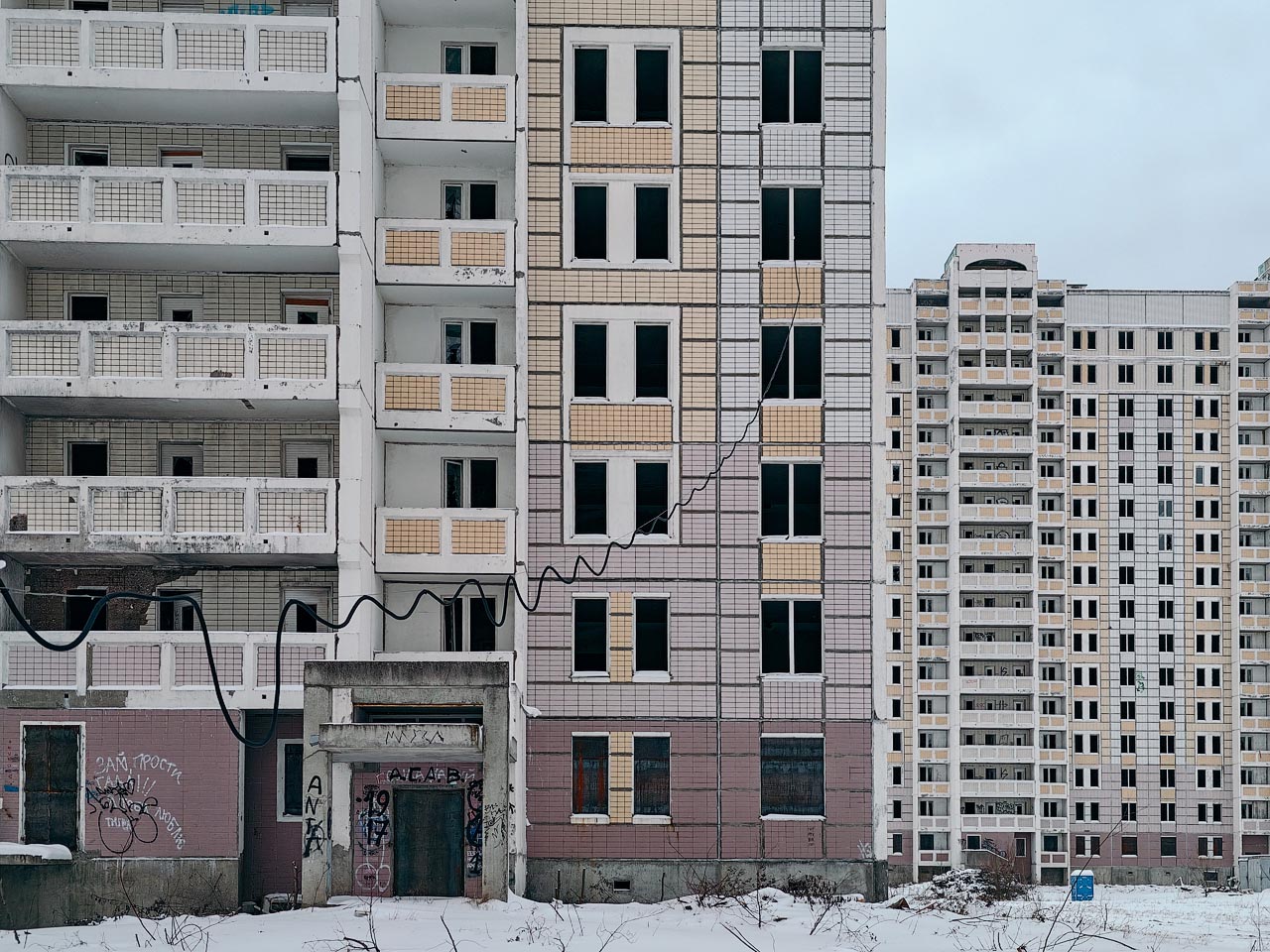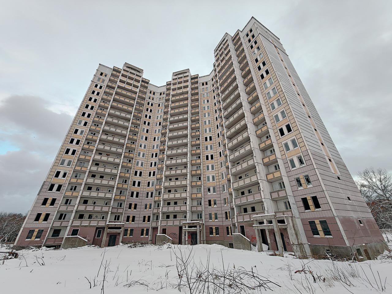 Тут уже забросили не один дом, а целый микрорайон с десятком домов, построенный ещё в 2010 году, но не оформленный из-за разногласий разных госструктур