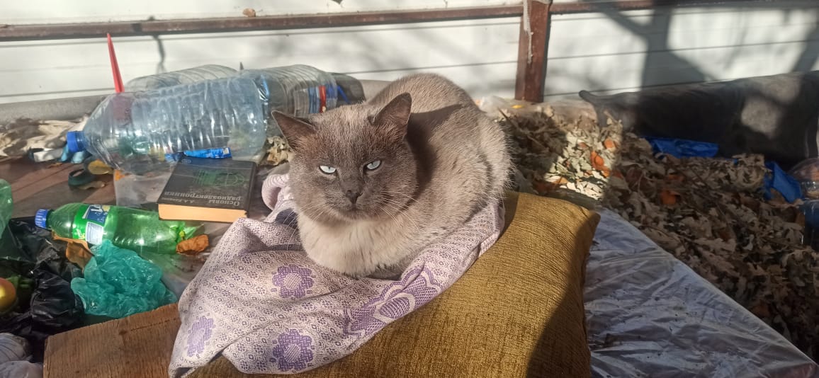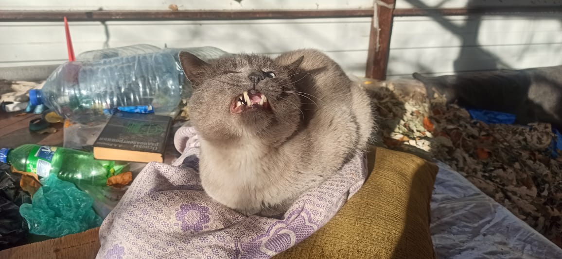 К родителям моего парня забегает вот такой бродячий кот. Заняли, как он зевает.