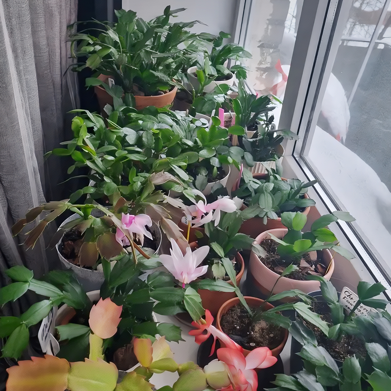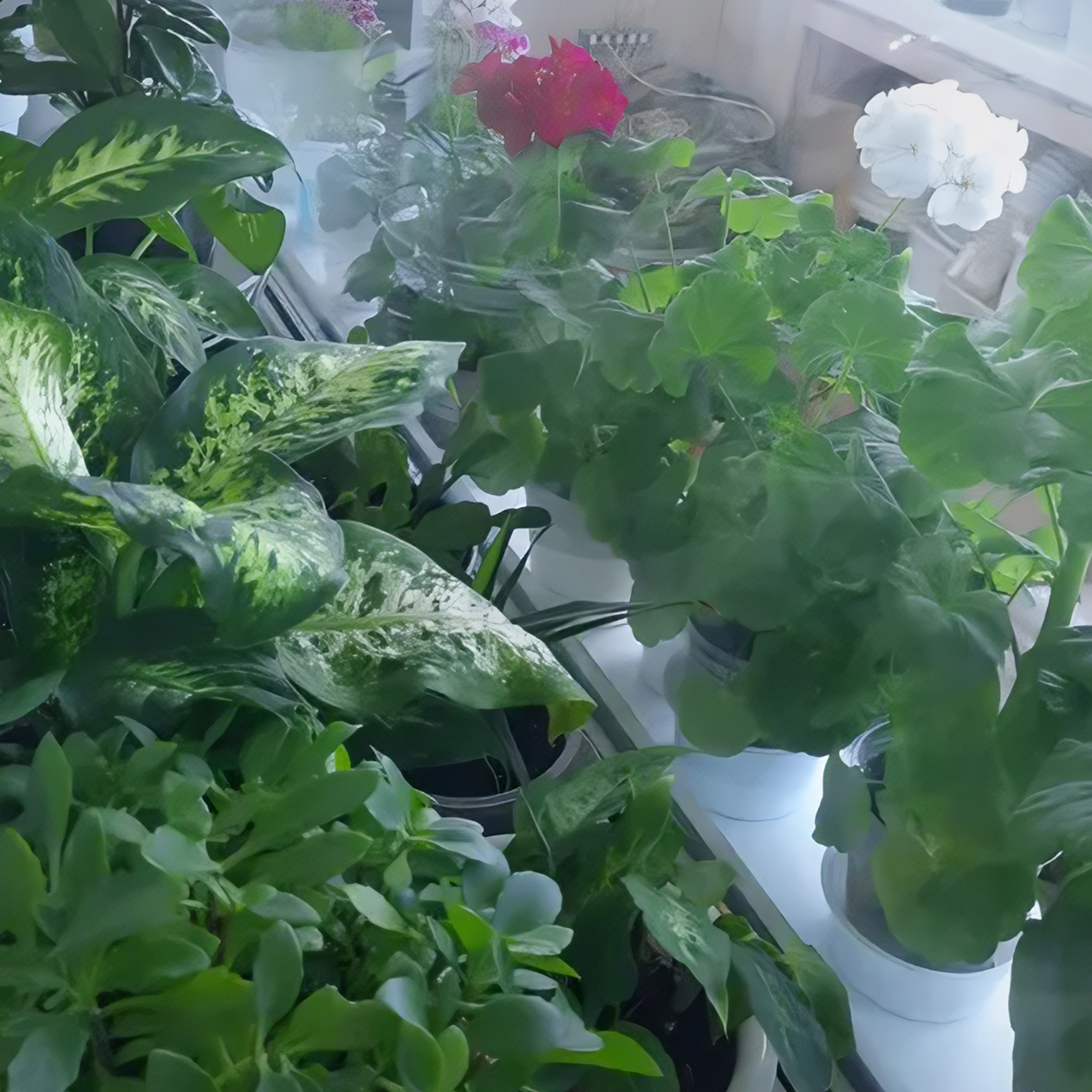 Заставлены все окошки. Еще в 2023 году купила на «Авито» большой металлический стеллаж со встроенными светодиодными лампами. Теперь вообще не остановиться.