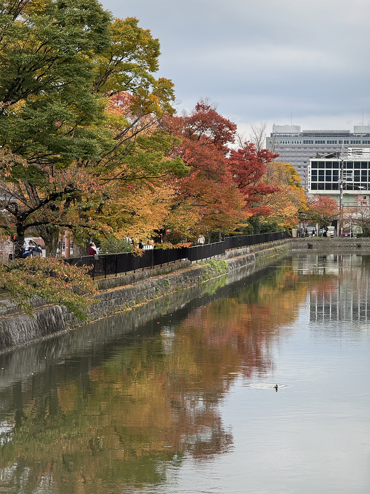 Просто красивые деревья у канала в Киото — мне понравилось отражение в воде
