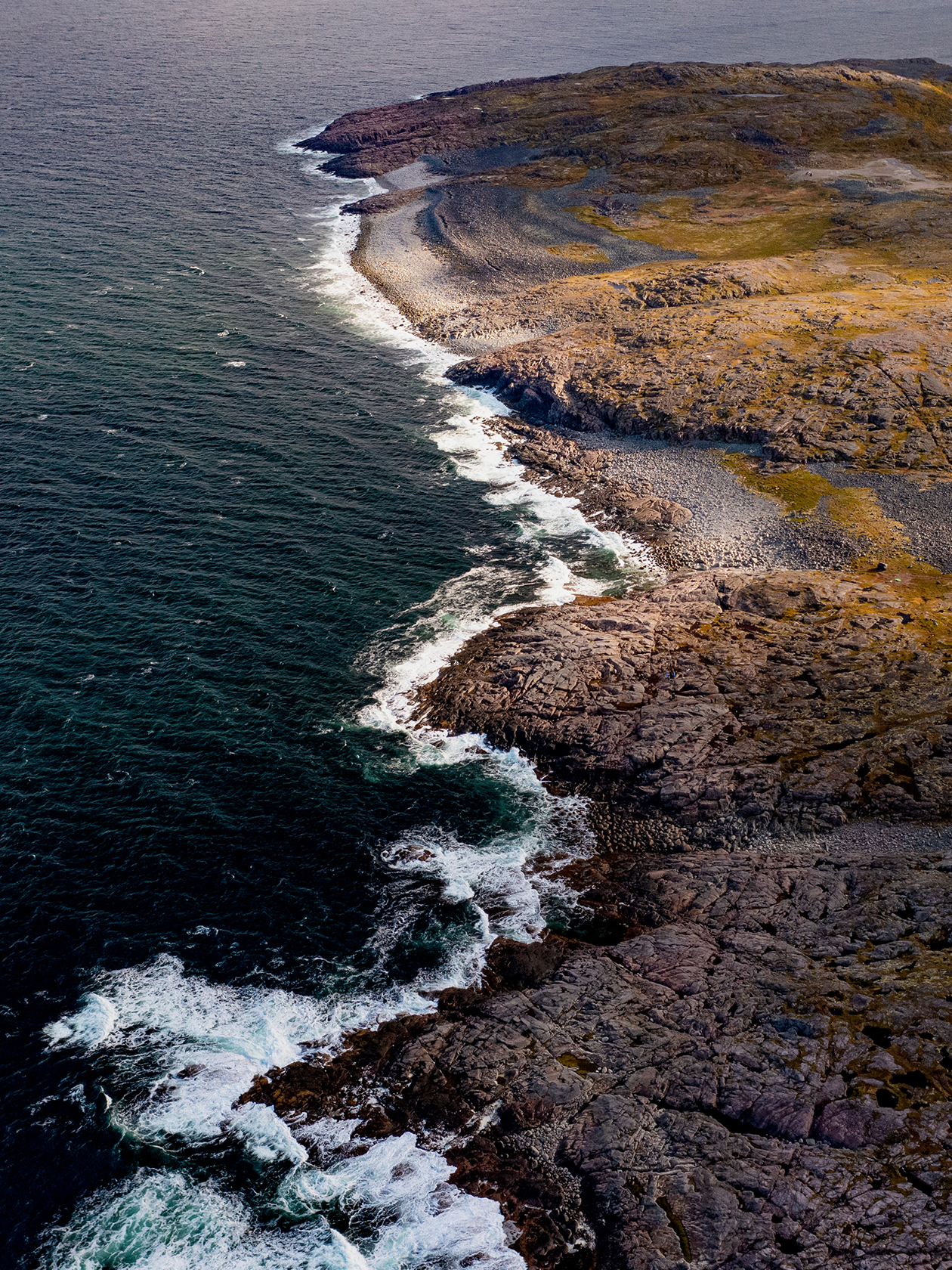 Фотография с дрона на берегу недалеко от Териберки. Для меня лично примечательна идеальным попаданием цветов одежды в окружающий пейзаж